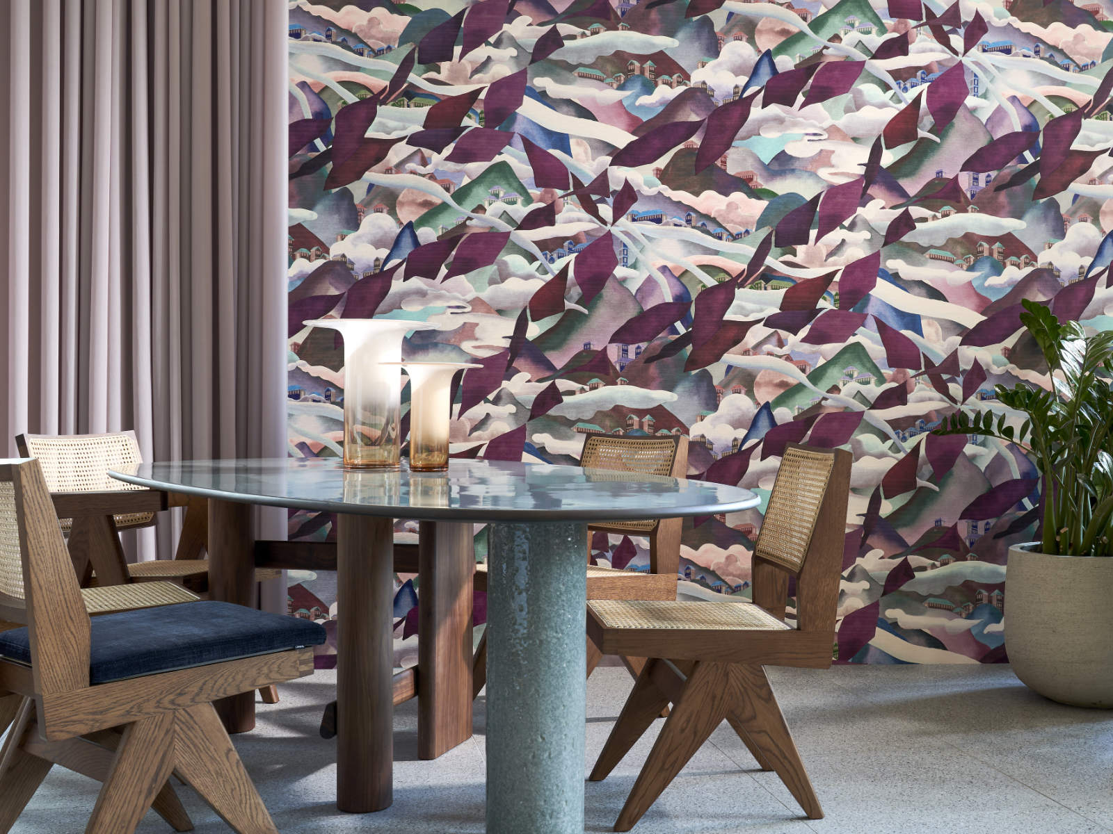 Het Manali dessin uit de Alaya collectie is een verfijnde en elegante weergave van deze traditionele bergdorpen. Het behang is gedetailleerd en met oog voor detail ontworpen, met een tijdloze uitstraling die past bij elke interieurstijl. Het dessin is verkrijgbaar in verschillende kleuren en tinten, waardoor het perfect past bij elke ruimte.