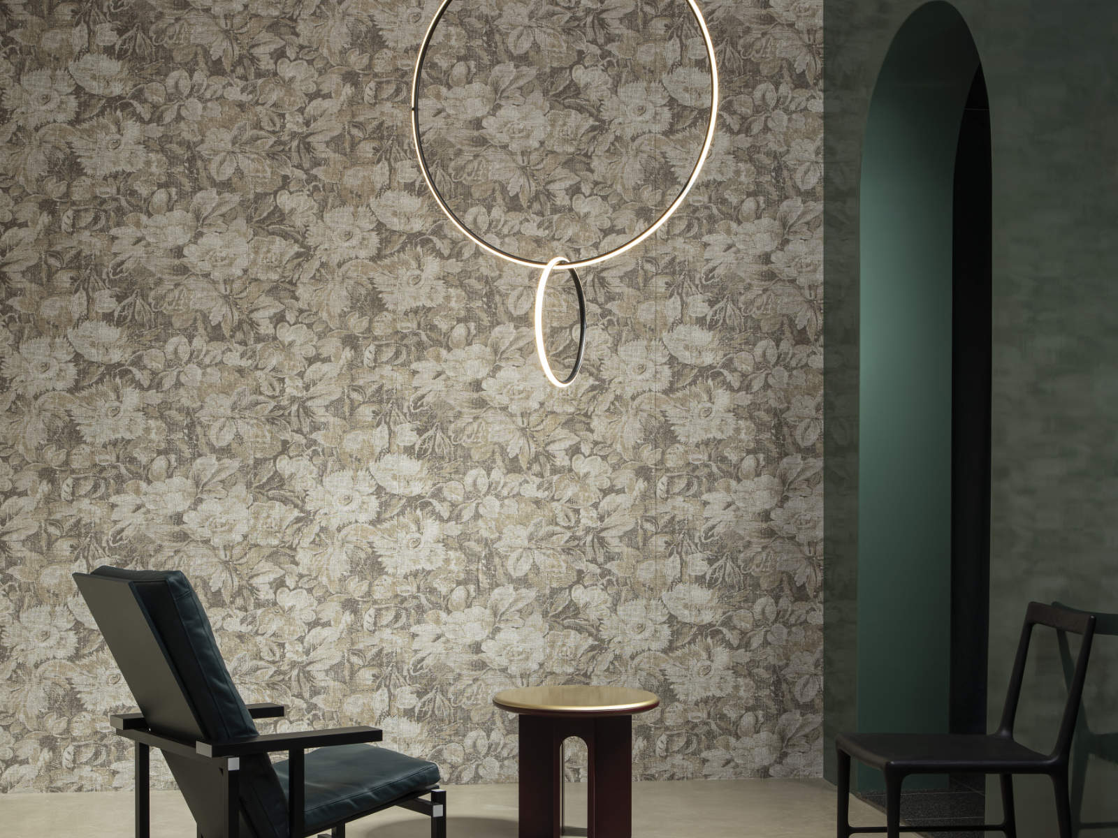 Van dichtbij zie je de mooie linnentextuur van het behang, wat bijdraagt aan de natuurlijke uitstraling en het gevoel van textiel. Van een afstand valt vooral de verweerde, ietwat vervaagde tekening op, wat het dessin een unieke uitstraling geeft die perfect past bij zowel moderne als klassieke interieurs. Het behang is gemaakt met oog voor detail en vakmanschap, wat zich uit in de sublieme kwaliteit en de mooie afwerking.