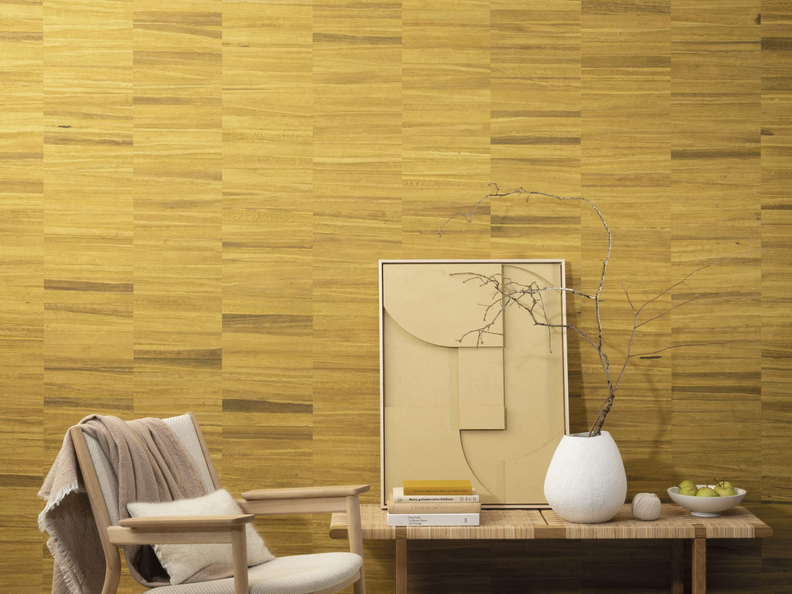 De Atelier by Omexco Naturally Beautiful - AT24 van Arte behang is een prachtig gestreepte uni dessin gemaakt van de vezels van de bananenboomschors.