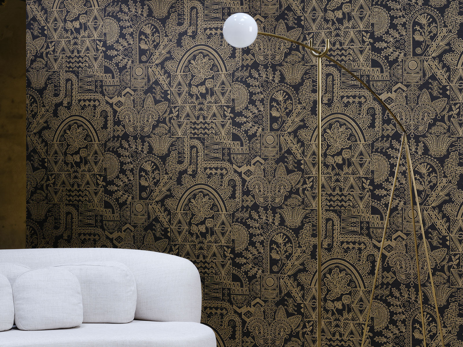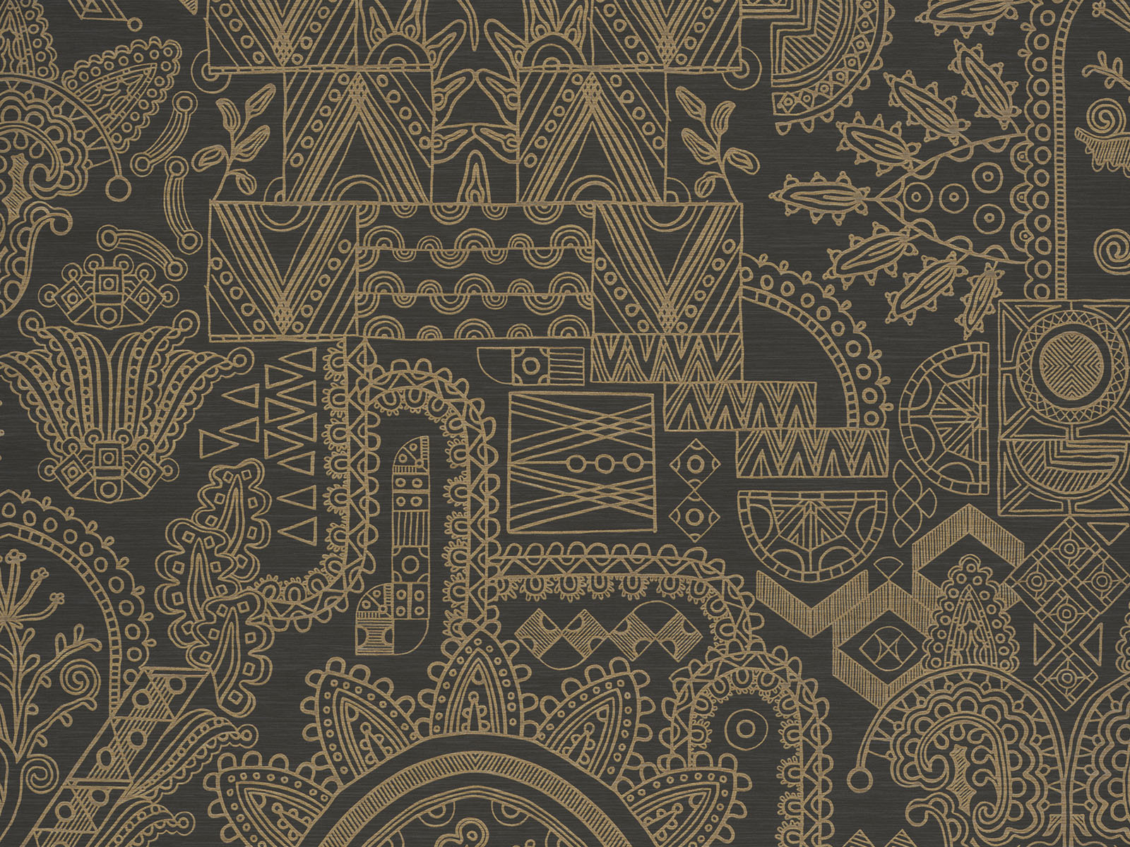 Met het Arte Emblème Joie behang haal je pure vrolijkheid in huis. Dit speelse geometrische dessin barst van de elegantie, met sierlijke paisley-vormen, verfijnde krullen en bloemrijke details die samen een levendig geheel vormen. De subtiele gebogen lijnen en decoratieve accenten zorgen voor een dynamisch en toch harmonieus patroon.