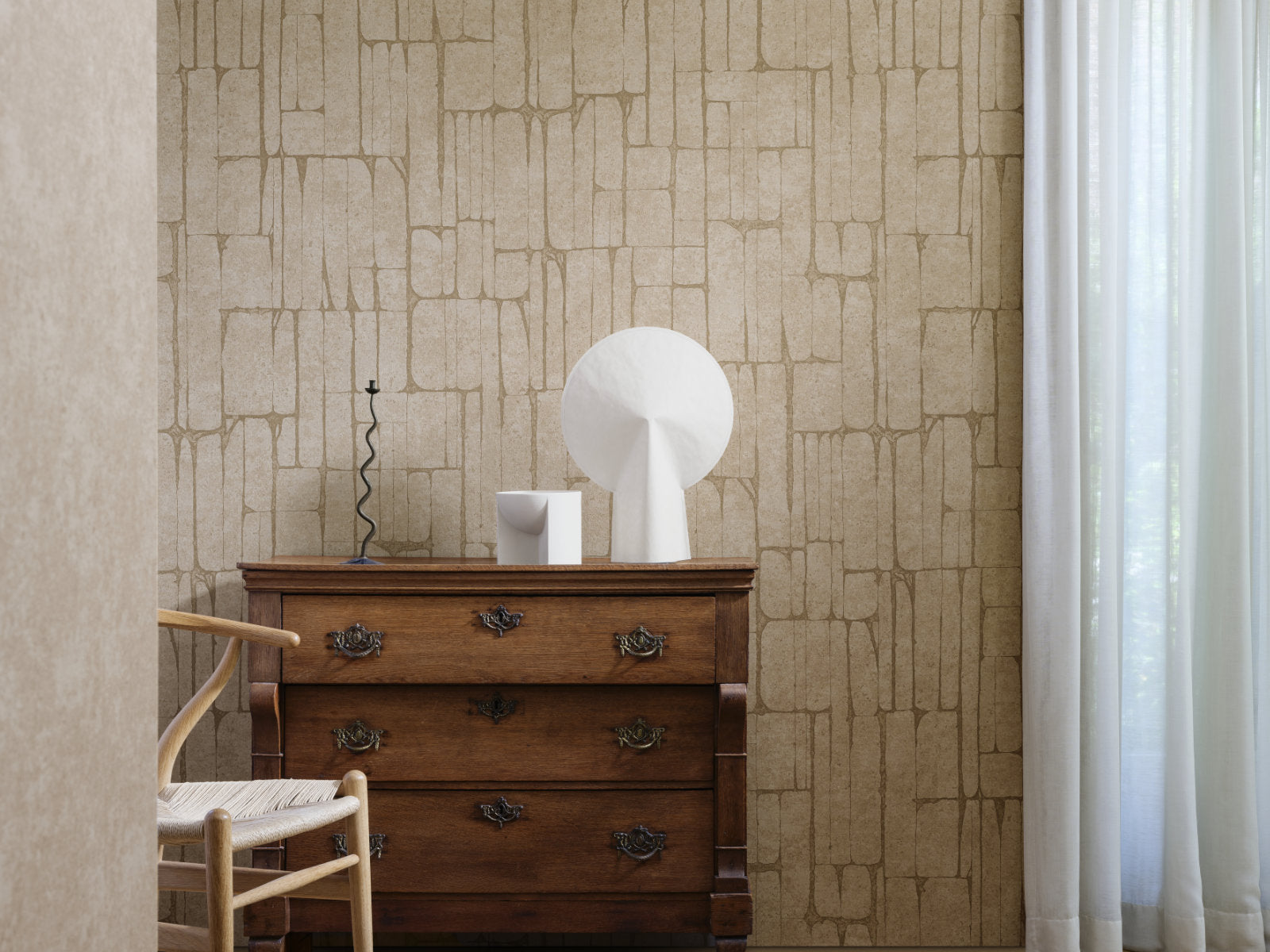 Breng structuur en karakter aan je muur met Arte Essentials Kaolin Solco, een geometrisch behang geïnspireerd op handmatig bewerkte klei. De afwisseling van smalle en brede groeven zorgt voor een ritmisch patroon dat lijkt te zijn gebeiteld in een mineraalachtige ondergrond. Dankzij de zachte kleurnuances krijgt het geheel een verfijnde, ambachtelijke uitstraling.