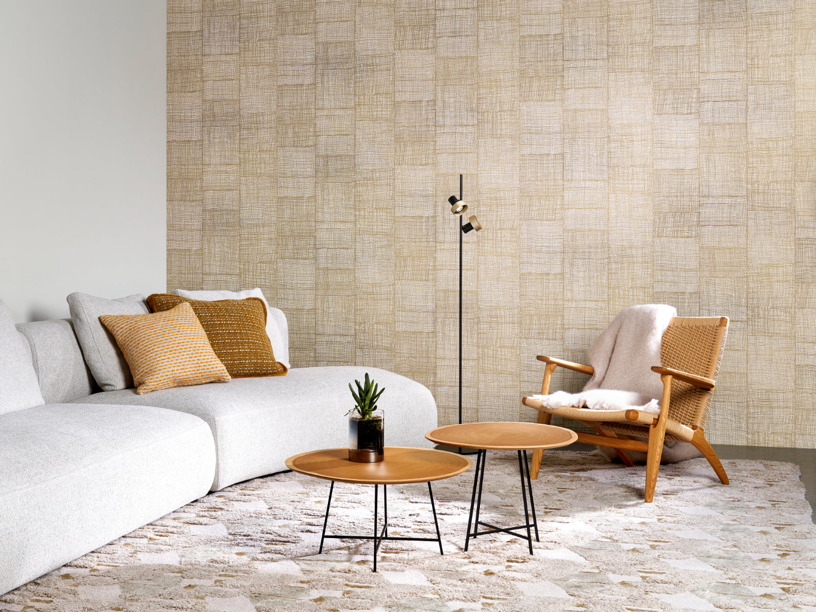 De Rabane - 18922 van Arte is geïnspireerd door het Franse 'Rabane'. Rabane is gemaakt van natuurlijke vezels, meestal van raffia. De los geweven structuur en de nonchalante naadjes zorgen voor een luchtig en uniek effect. Daarnaast zorgt de subtiele glans voor een interessant contrast met de ruwere raffiatextuur, waardoor dit behang een echte blikvanger wordt.