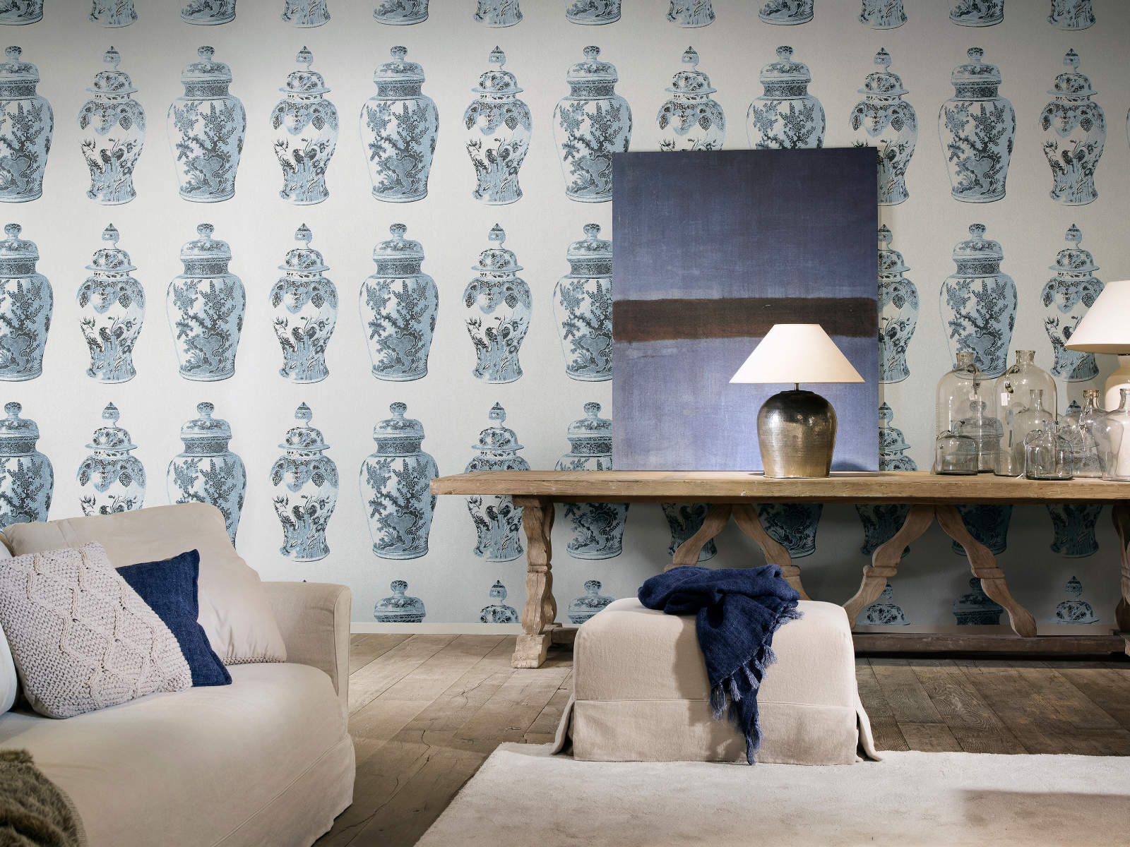 De Flamant Les Memoires Poterie - 80000 van Arte behang is een ware traktatie voor behang liefhebbers. Het dessin, geïnspireerd op oosterse kunst, straalt elegantie uit. Verkrijgbaar in de tijdloze porseleinkleuren wit en blauw, of in warme aardetinten. Een prachtige toevoeging aan ieder interieur.