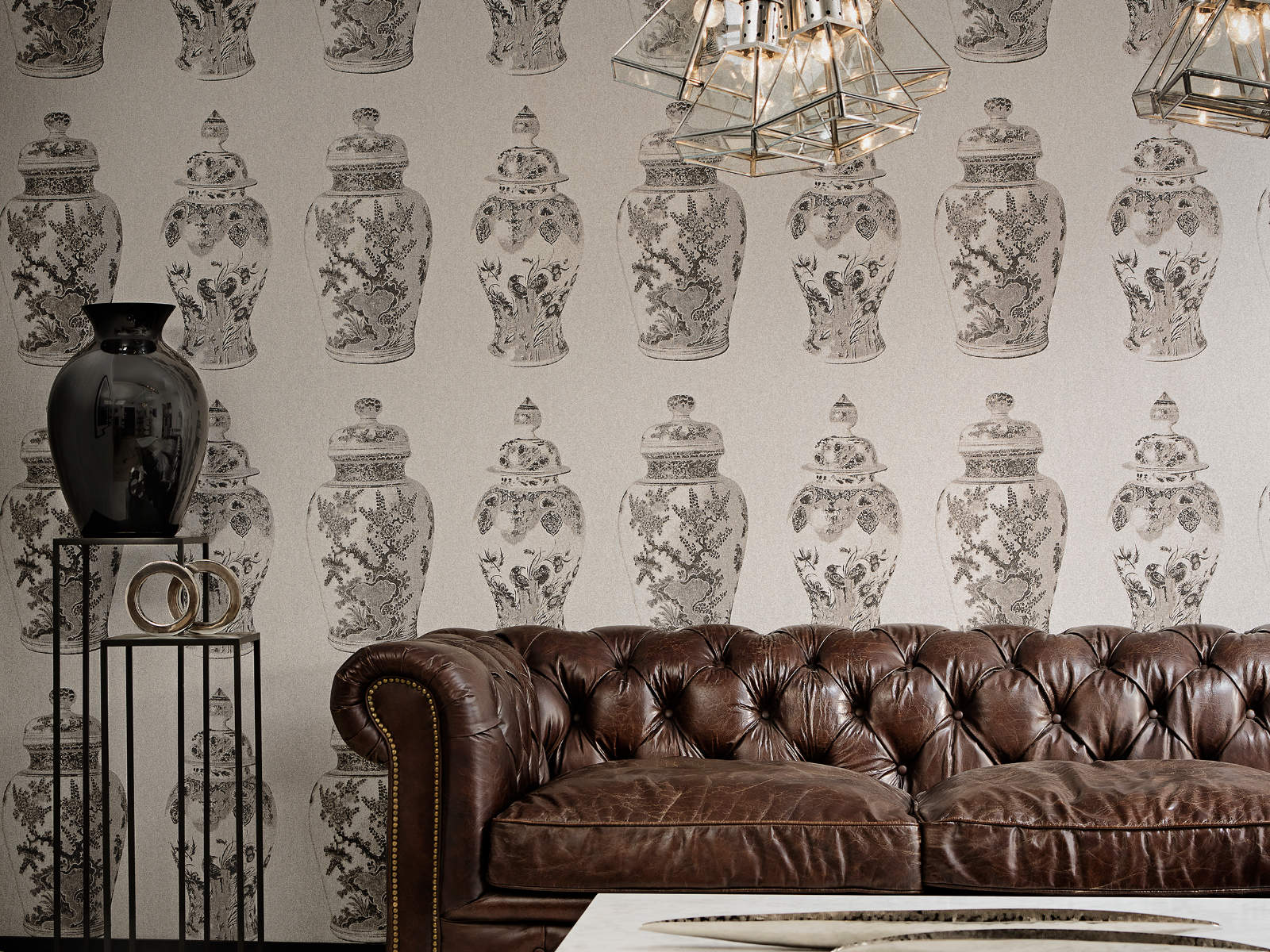 De Flamant Les Memoires Poterie - 80001 van Arte behang is een ware traktatie voor behang liefhebbers. Het dessin, geïnspireerd op oosterse kunst, straalt elegantie uit. Verkrijgbaar in de tijdloze porseleinkleuren wit en blauw, of in warme aardetinten. Een prachtige toevoeging aan ieder interieur.
