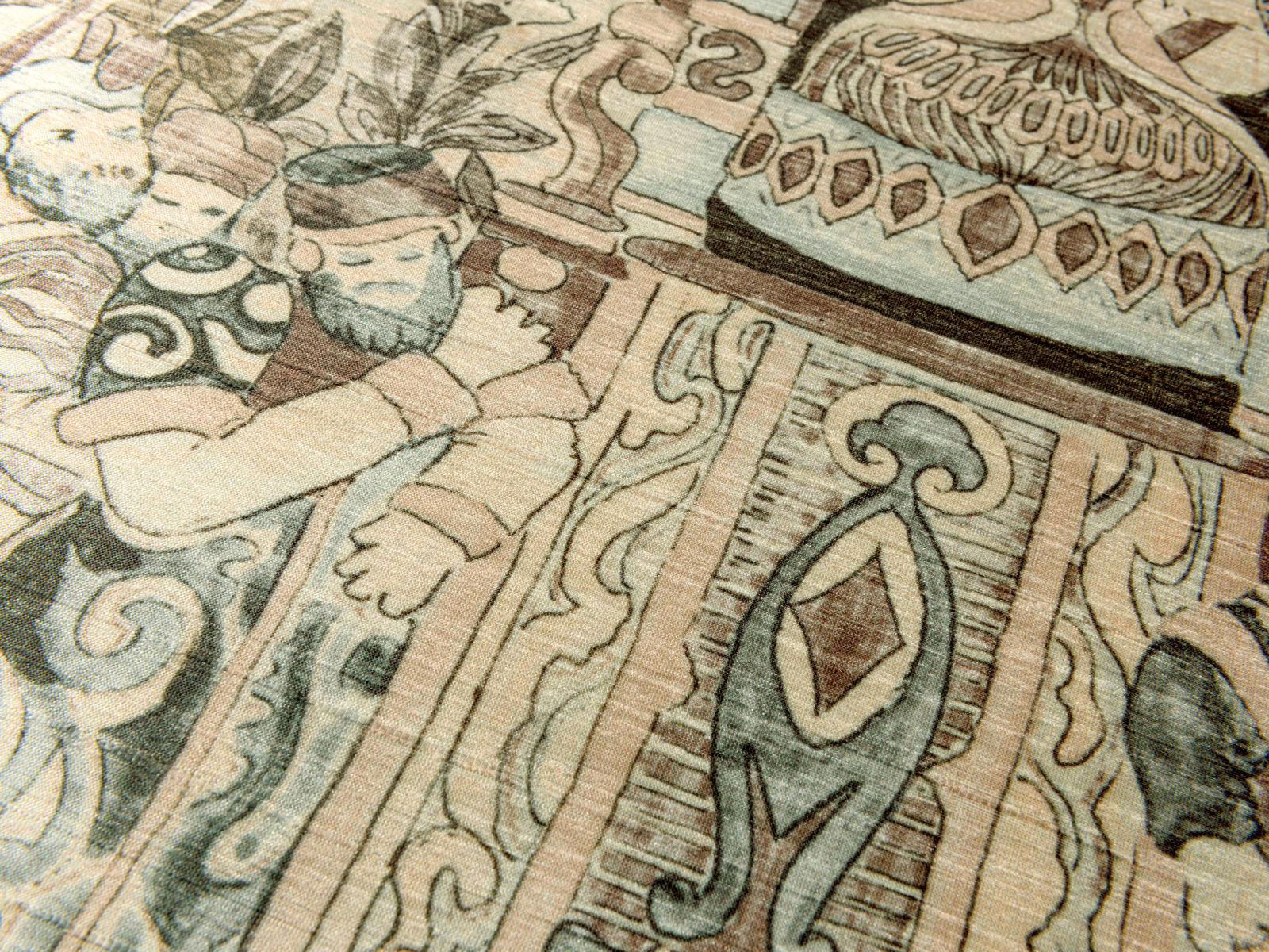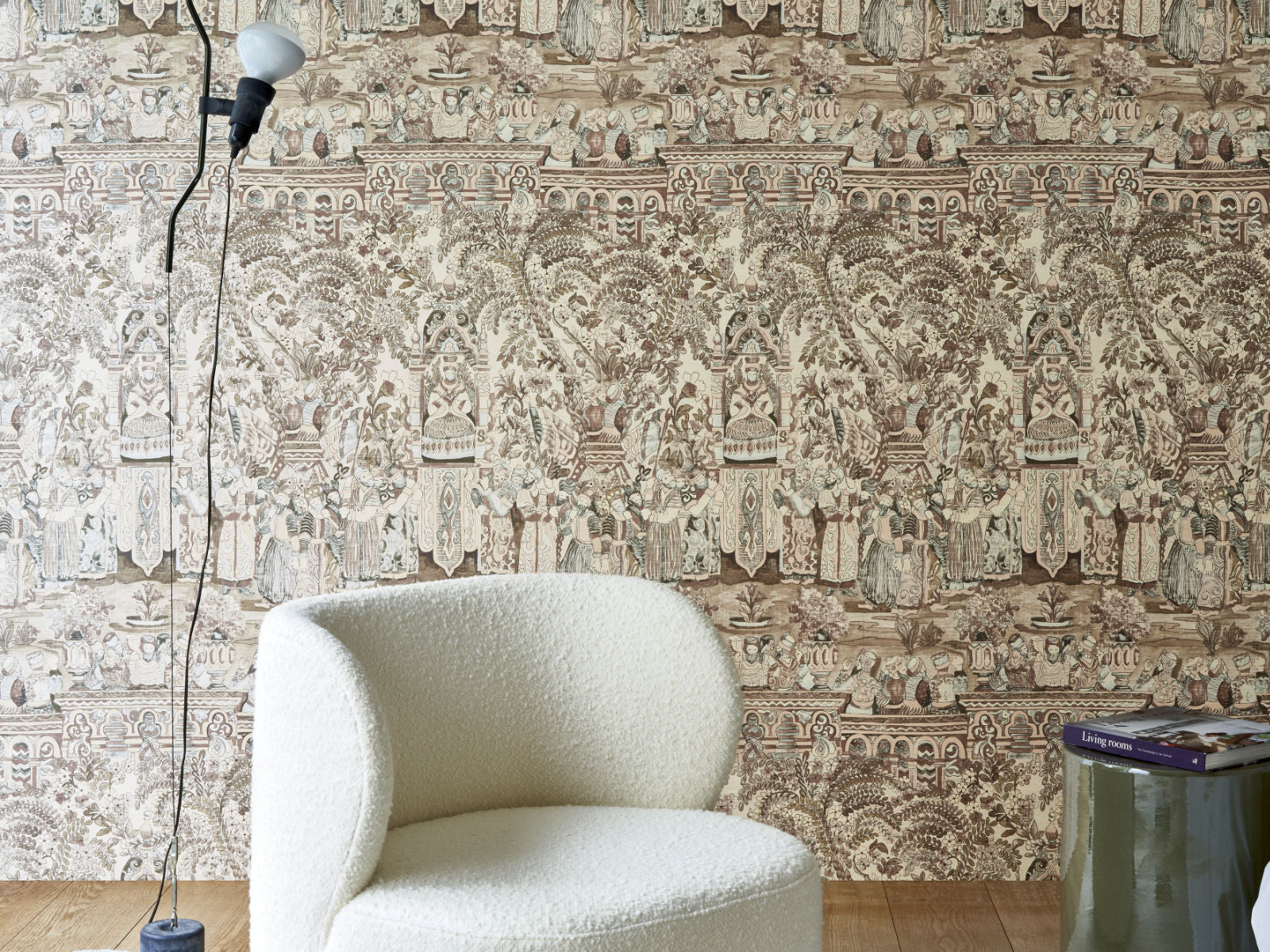 De Gitane Emperador - 49501 van Arte behang is een kleurrijk patroon dat is gebaseerd op een handschilderijdat een vrolijk tafereel uit het Ottomaanse rijk illustreert. De muurbekleding imiteert een fijne zijde. Een waar statement aan de muur!