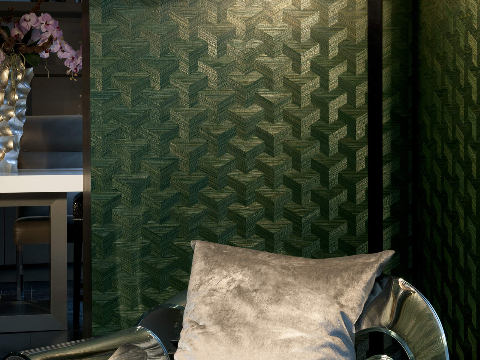 De Heliodor Cube - 49003 van Arte behang is een uniek dessin dat de kunst van de Nederlandse graficus Maurits Escher eert. Dit behang laat je woning of kantoor transformeren in een kunstwerk dat tegelijkertijd functioneel en visueel indrukwekkend is. Met zijn hoekige en mathematische ontwerp van de Cube, creëert dit behang een illusie van diepte en een derde dimensie. Het is een stijlvolle en moderne aanvulling op elke ruimte, waar je ook bent.