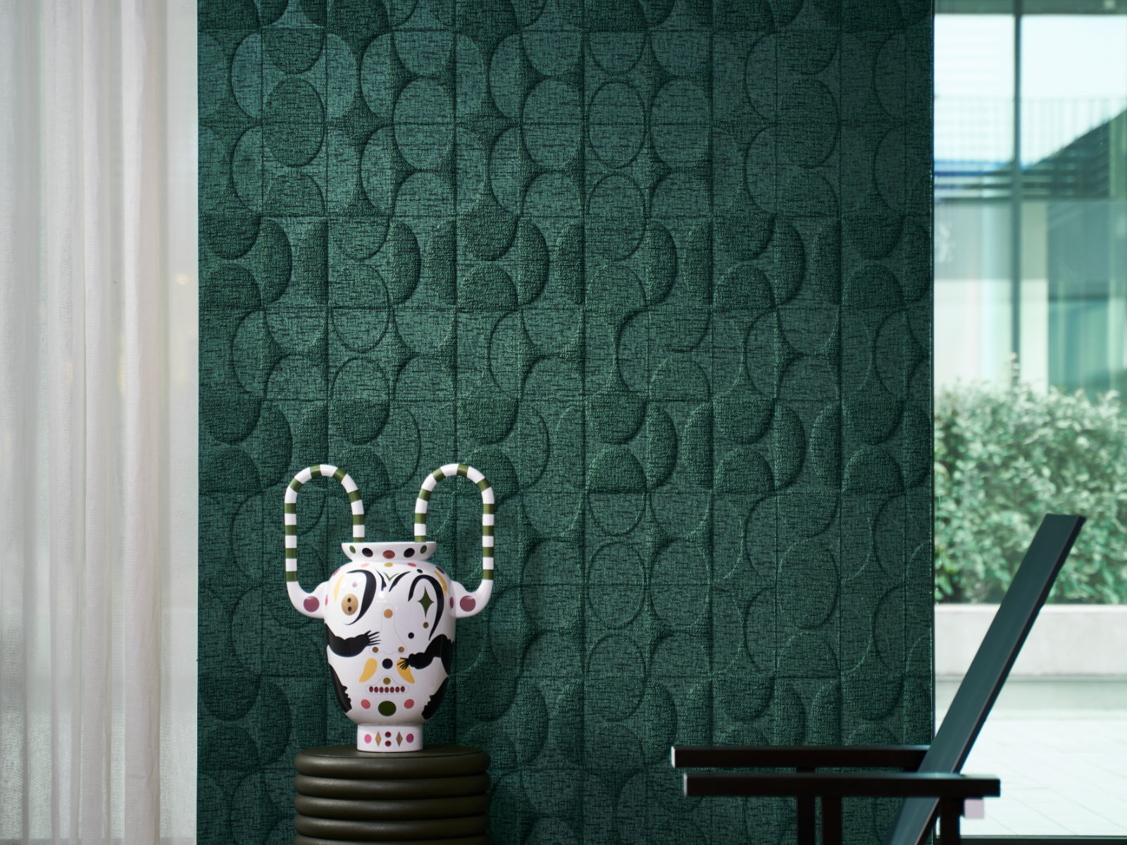 De Icons Curve - 85552 van Arte behang is vervaardigd uit een 3D bouclé stof. De zachte, ronde vormen zijn verwerkt in een subtiele grid, met een vleugje vintage.