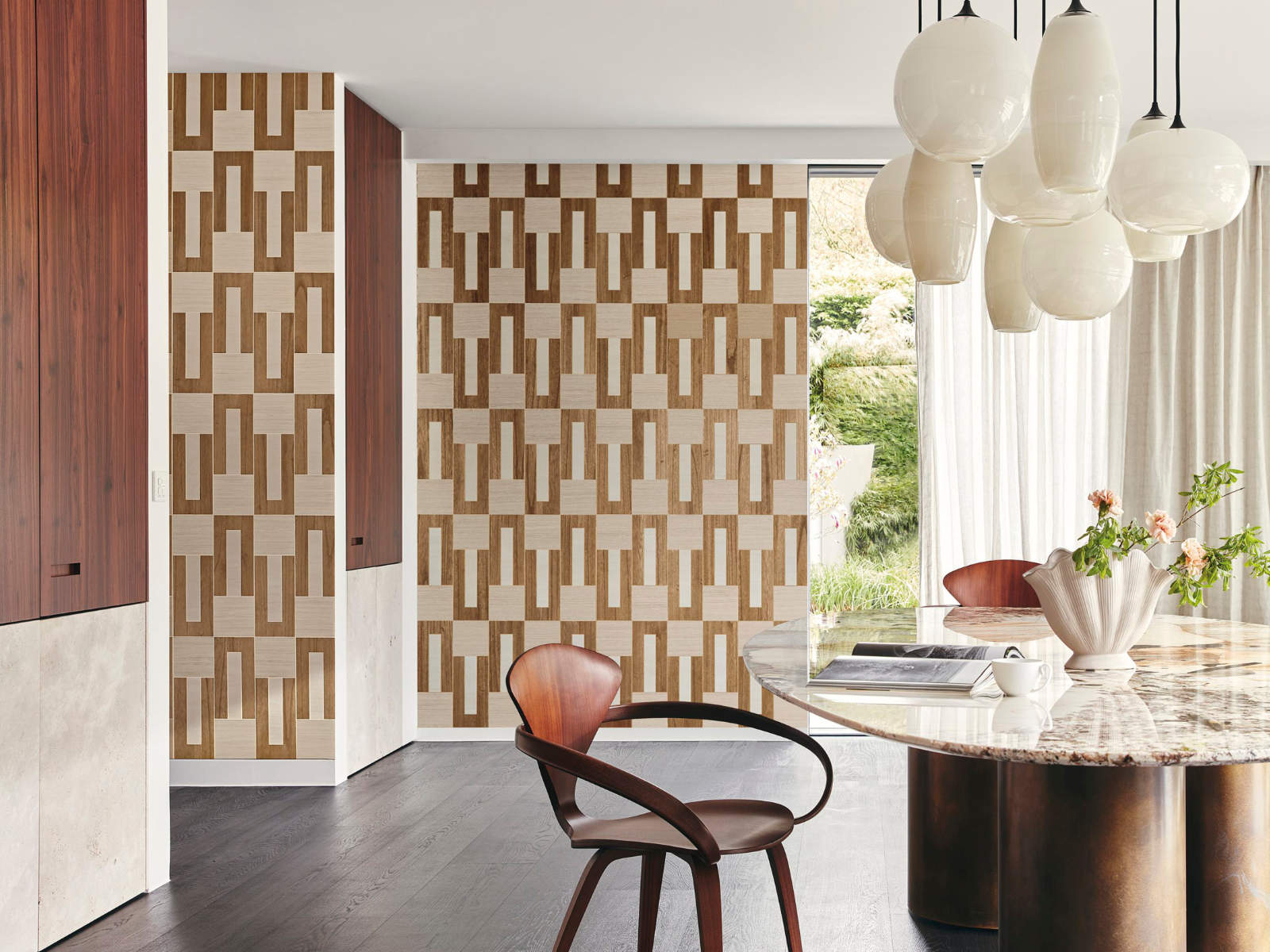 De Imperialis Elongata - IM51 van Arte is een uniek dessin met geometrische vormen. Dit behang voegt direct karakter toe aan elke ruimte. Of je nu een moderne minimalistische look wilt creëren of juist een vintage sfeer wilt omarmen, dit houten behang biedt eindeloze mogelijkheden.