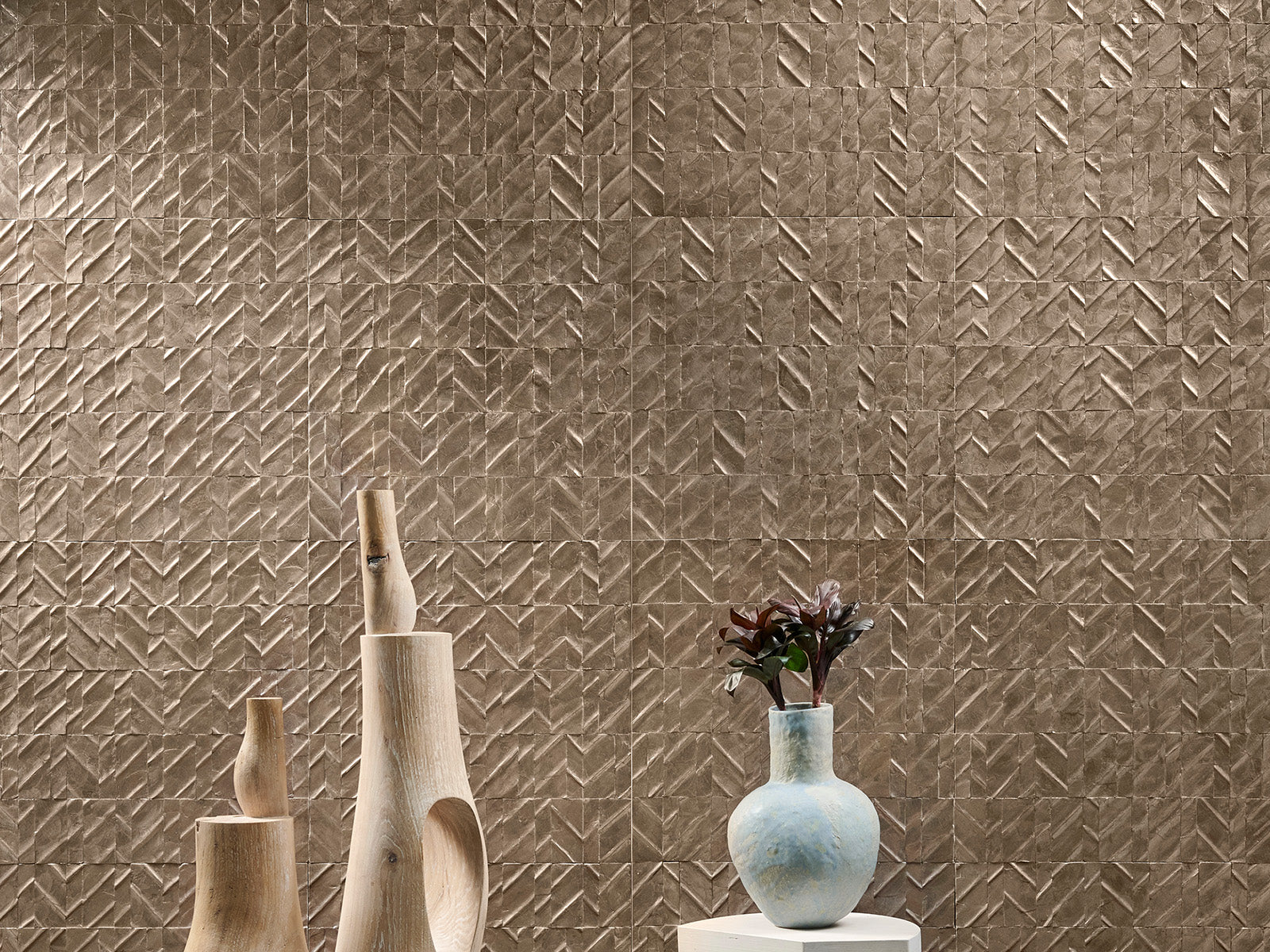 Laat je muur stralen met de verfijnde elegantie van Arte Luster Perula. Dit exclusieve geometrische behang bestaat uit handmatig ingelegde capiz-schelpen die een weelderige parelmoerglans geven. De strakke blokken creëren een rustig ritme, terwijl het subtiele reliëf en het spel van licht en reflectie zorgen voor een dynamisch en luxueus effect in elke ruimte.