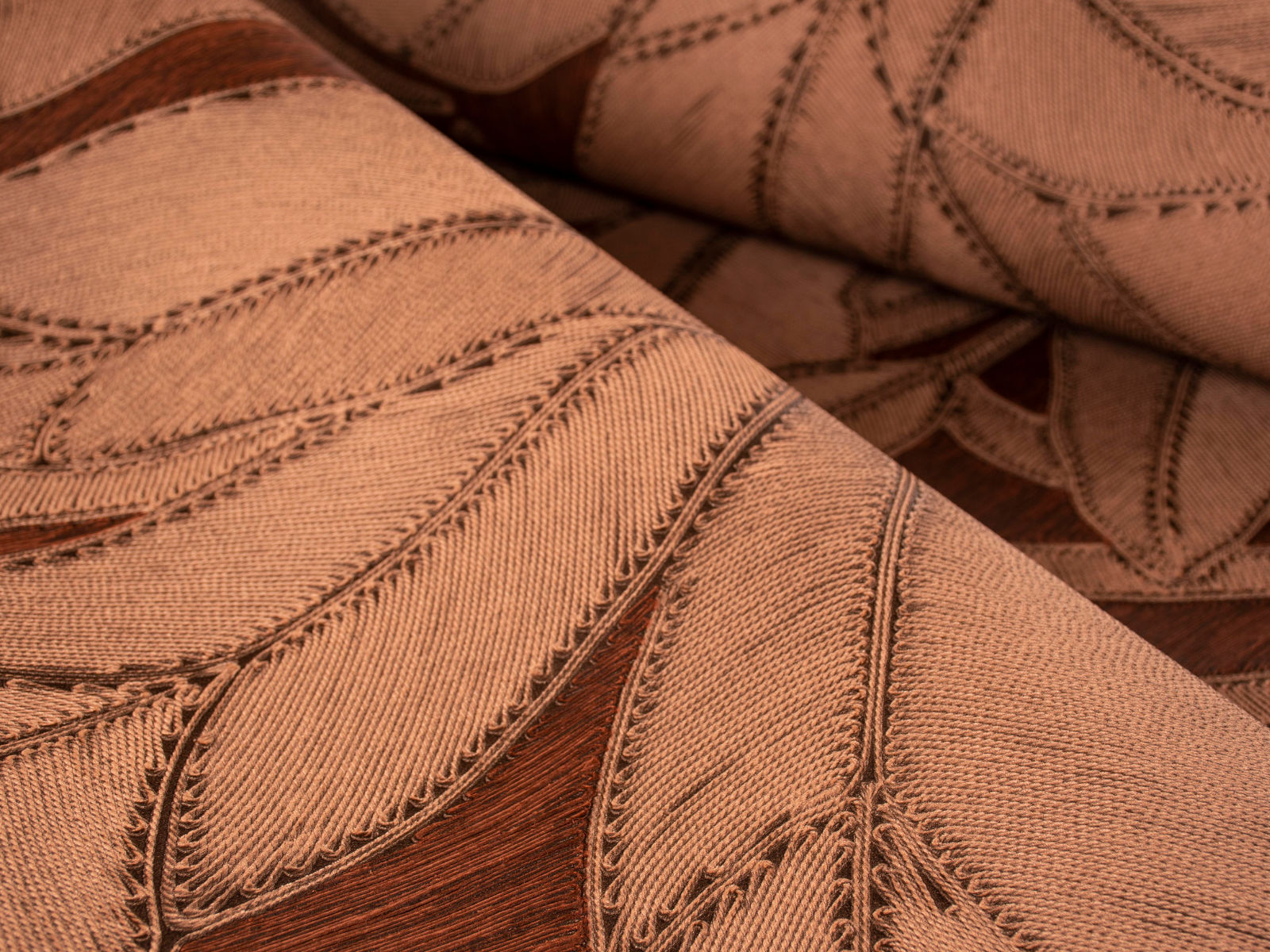 Minutieus touw van verschillende materialen en diktes is handmatig in verschillende patronen geplaatst, waardoor een minimalistische tekening met bijhorend reliëf ontstaat. De vertaling van dit precisiewerk naar de muur geeft een zeer verfijnde en chique uitstraling. Manila speelt in op de interieurtrends waarbij men geweven touwen en koorden integreert in diverse toepassingen.