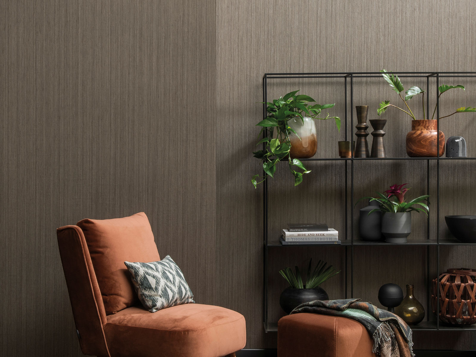 De Portfolio - POR3005 van Arte behang creëert een verscheidenheid aan texturen en materialen. De vezels zijn zorgvuldig geselecteerd en het spinnen en verven van garens leidt tot een unieke collectie behang. In deze verfijnde en luxueuze collectie wordt textiel gevierd als een groots materiaal, die het interieur verleidt door haar verfijnde eenvoud en tijdloze elegantie.