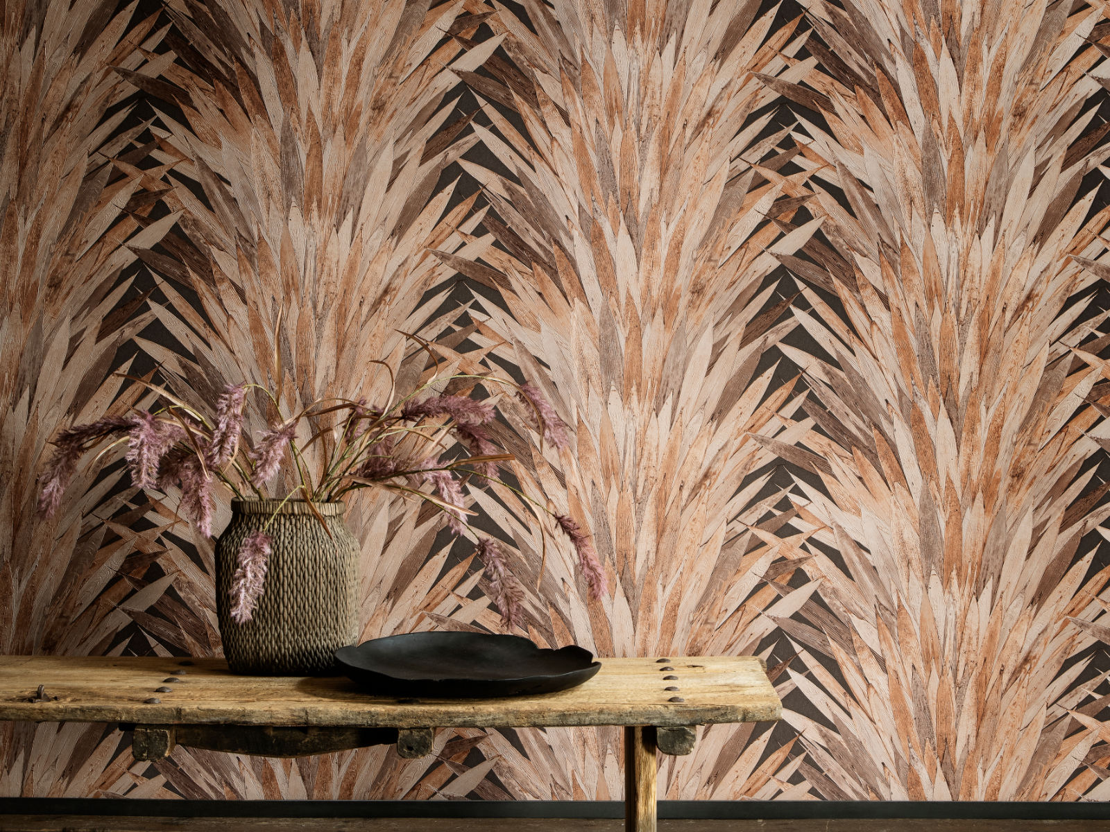 De Selva collectie van Arte behang illustreert de tropische natuurpracht door het gebruik van natuurlijke materialen, warme tinten en ruwe reliëfstructuren. Voor deze collectie heeft Arte zich laten inspireren door het ondoorgrondelijke oerwoud. Het schaduwspel van licht en donker creëert een extra dimensie waardoor de gebruikte materialen volledig tot hun recht komen.
