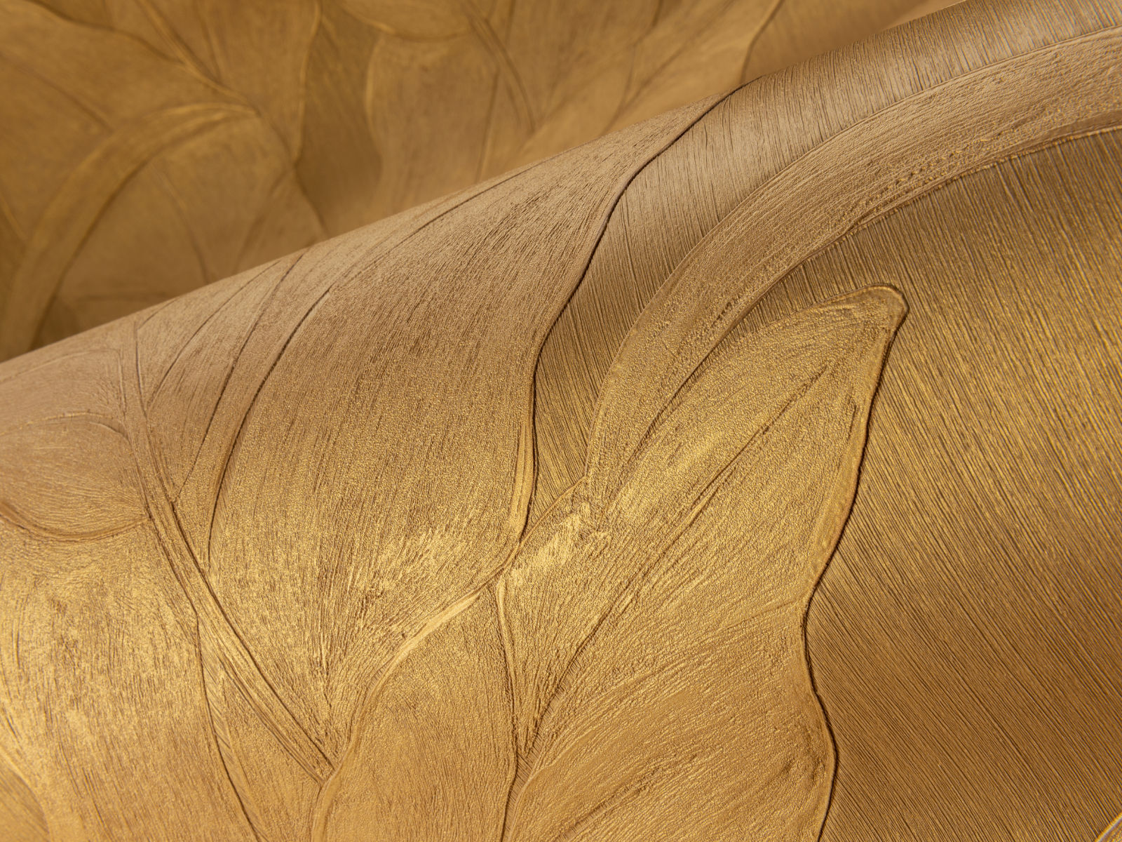 De Selva Musa - 75004A van Arte behang blinkt figuurlijk uit in zijn natuurgetrouwheid én letterlijk in de luxueuze afwerking van metaalglans. De bladeren van de bananenplant ademen overduidelijke de tropische natuur.