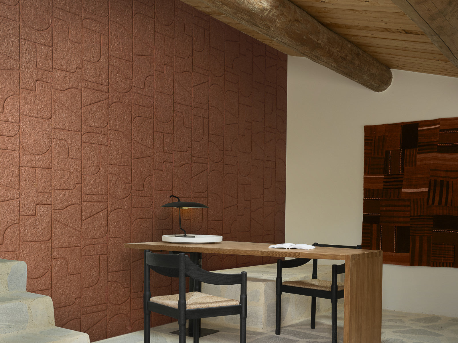 Arte Terra Arcane betovert met een subtiel spel van ronde en rechte vormen, die samen een geometrisch geheel vormen dat rust uitstraalt. De textuur van verweerd pleisterwerk geeft dit 3D-behang een artistieke gelaagdheid die je uitnodigt om dichterbij te komen en de details te ontdekken. Het resultaat is een wandbekleding die even kalm als karaktervol aanvoelt.