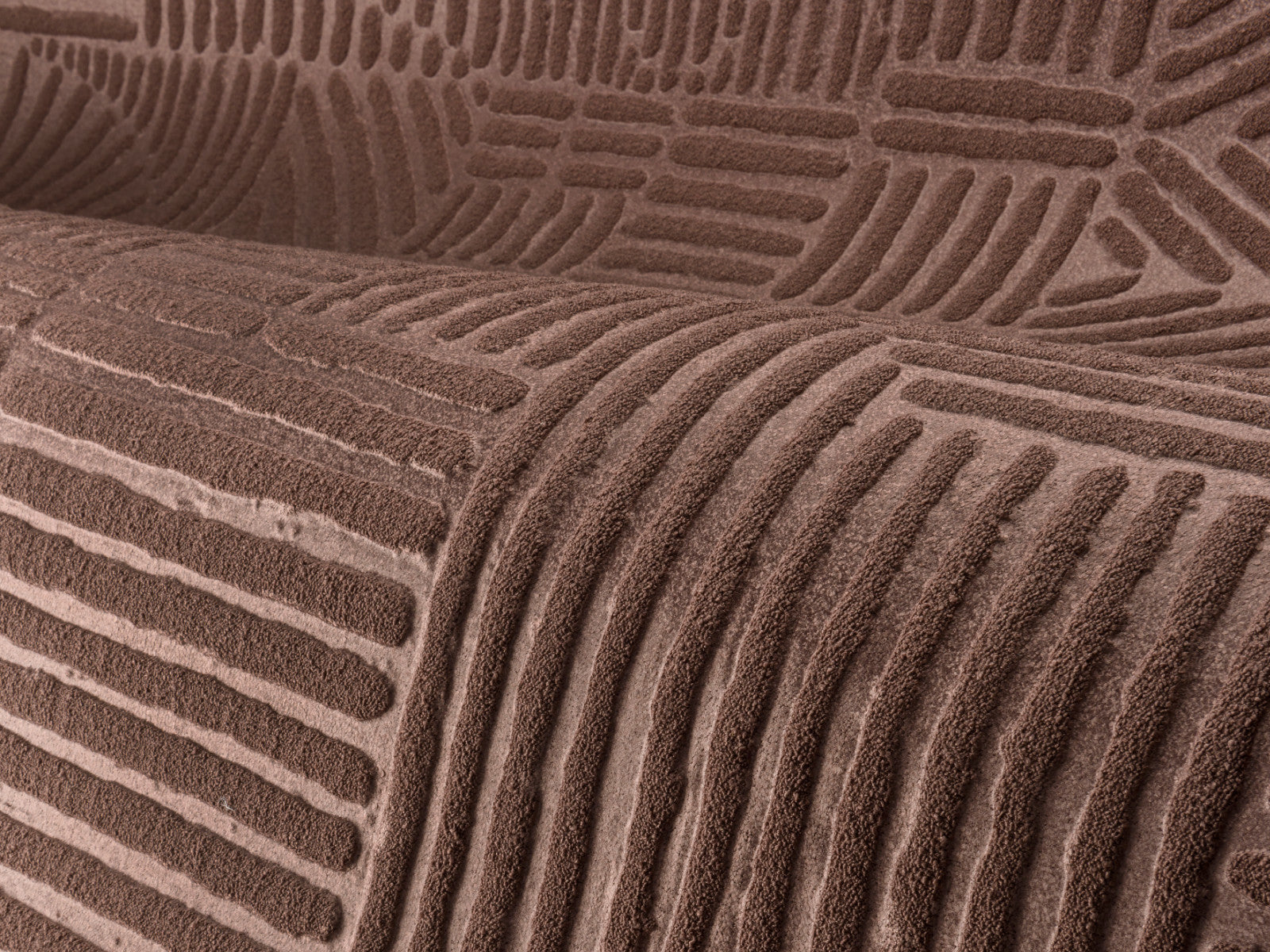 Met de Arte Terra Carvato haal je de tijdloze elegantie van oude steenmozaïeken in huis, vertaald naar een modern 3D-behang met een indrukwekkend reliëf. Het geometrische patroon komt tot leven door lijnen die in verschillende richtingen bewegen, wat zorgt voor een levendig en dynamisch effect op de wand. Dit dessin voelt niet alleen ambachtelijk aan, het oogt ook als een kunstwerk met een rijke textuur.