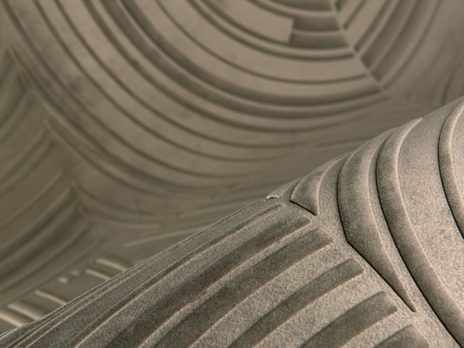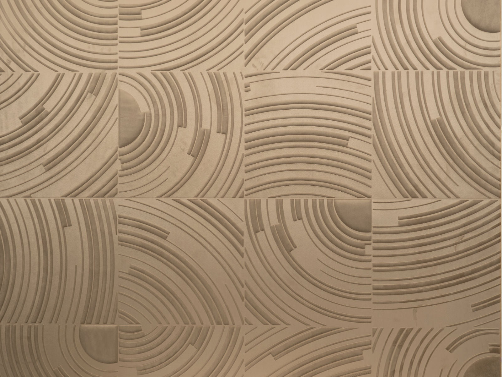 De Velveteen Twirl - 87002 van Arte behang creëert een overvloed aan opties voor het interieur door de verweven gefragmenteerde cirkels. De wand krijgt een mooi en levendig effect door het soft-touch-fluweel. Er kunnen lichte markeringen voorkomen of verschijnen in de dieper liggende delen van de patronen. Dat is karakteristiek voor fluweel en draagt bij aan de natuurlijke charme van het product.