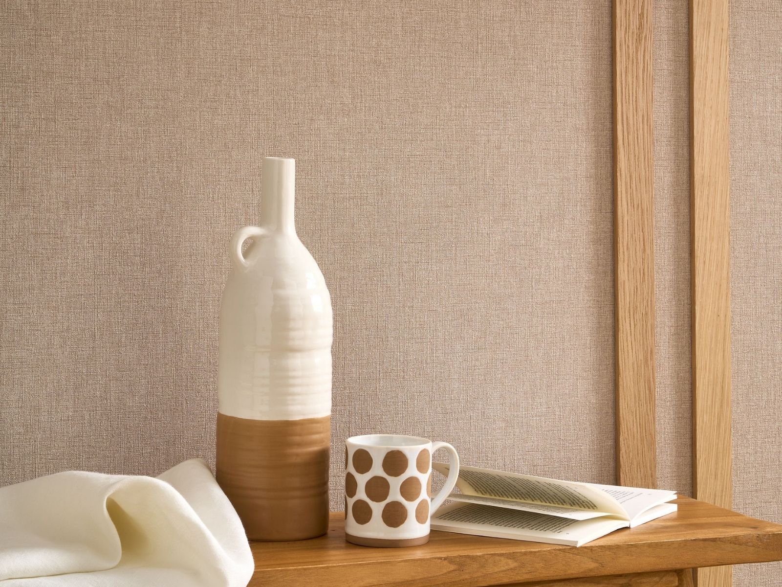 Laat je muren spreken met de verfijnde elegantie van het Casadeco Caractère behang. Dit vinyl uni behang voelt aan als een linnen canvas met een subtiele, zichtbare weefstructuur. De rijke textuur en zachte uitstraling brengen direct een gevoel van rust en geborgenheid in huis, alsof je wordt omhuld door de tijdloze charme van een vertrouwde omgeving.