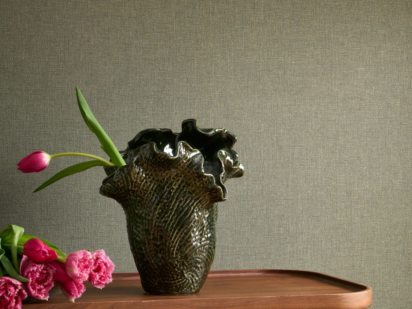 Laat je muren spreken met de verfijnde elegantie van het Casadeco Caractère behang. Dit vinyl uni behang voelt aan als een linnen canvas met een subtiele, zichtbare weefstructuur. De rijke textuur en zachte uitstraling brengen direct een gevoel van rust en geborgenheid in huis, alsof je wordt omhuld door de tijdloze charme van een vertrouwde omgeving.