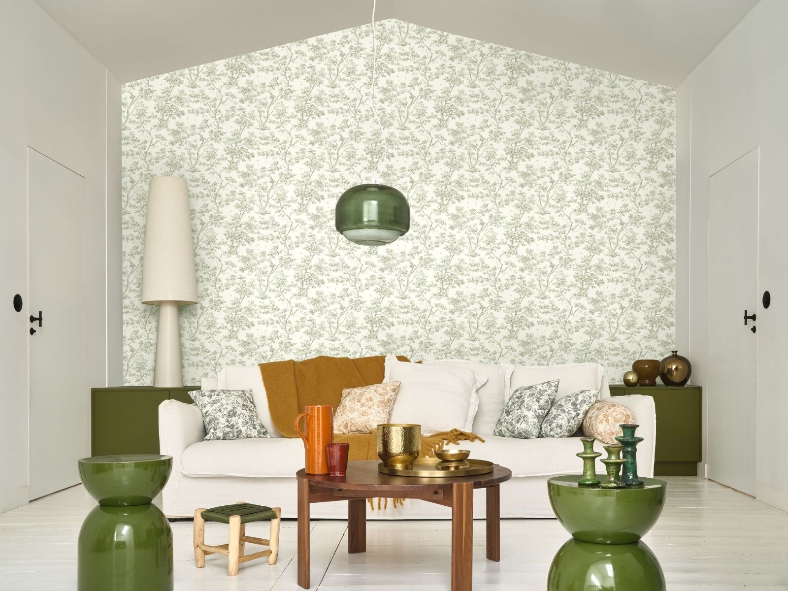 Laat je muren tot leven komen met het behang Arbre uit de Casadeco collectie Les Belles Toiles De Jouy 2. Dit botanische behang toont sierlijke boom- en vogelmotieven, geïnspireerd op het sprookjesachtige bos van Fontainebleau. De zachte kleuren, zoals linnenbeige en amandelgroen, brengen rust in je interieur, terwijl de diepe houtskooltint perfect past bij koperen accenten of een industriële stijl. Met dit behang haal je de magie van het bos naar binnen en geef je elke ruimte een verfijnde en natuurlijke uitstraling.