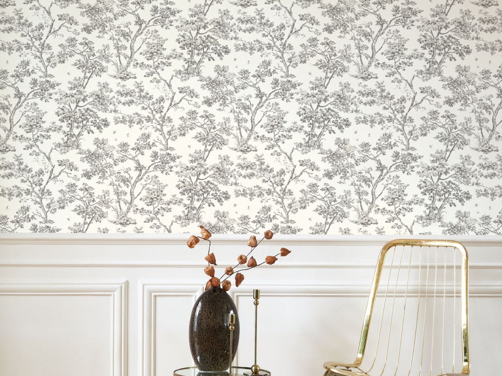 Laat je muren tot leven komen met het behang Arbre uit de Casadeco collectie Les Belles Toiles De Jouy 2. Dit botanische behang toont sierlijke boom- en vogelmotieven, geïnspireerd op het sprookjesachtige bos van Fontainebleau. De zachte kleuren, zoals linnenbeige en amandelgroen, brengen rust in je interieur, terwijl de diepe houtskooltint perfect past bij koperen accenten of een industriële stijl. Met dit behang haal je de magie van het bos naar binnen en geef je elke ruimte een verfijnde en natuurlijke uitstraling.
