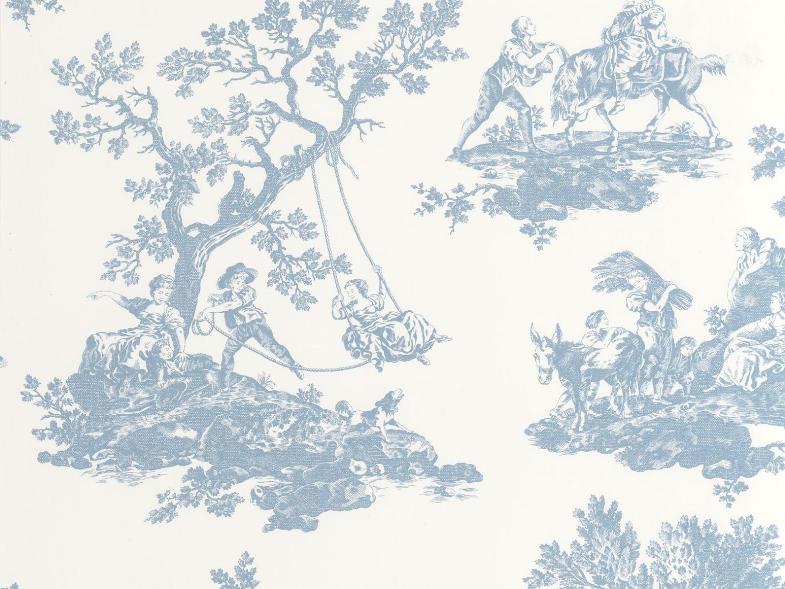 Laat je meevoeren in het ritme van het platteland met het behang Cadence uit de Les Belles Toiles De Jouy 2 collectie van Casadeco. Dit elegante vliesbehang toont levendige taferelen van schommelende figuren, galopperende paarden en oogstende boeren, geïnspireerd op historische Indiase dessins. De landelijke illustraties, rechtstreeks uit het Casadeco-archief, krijgen een moderne twist en brengen dynamiek en nostalgie samen op je muur.
