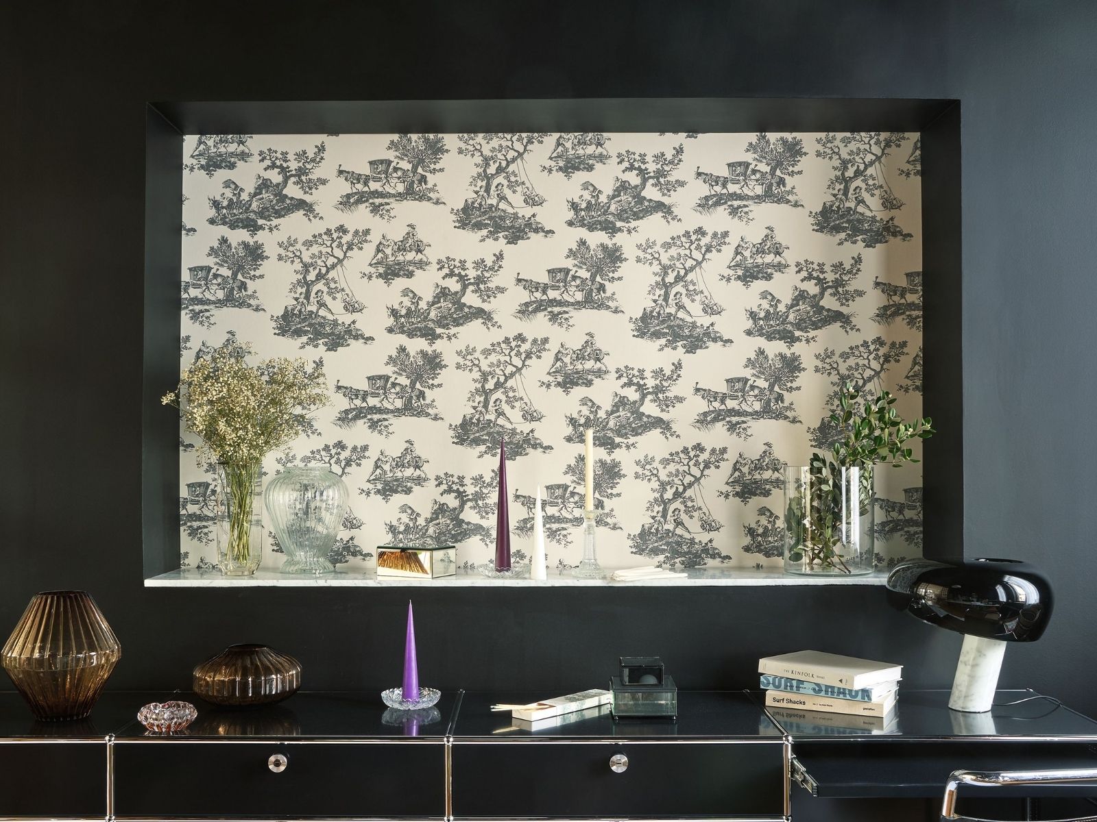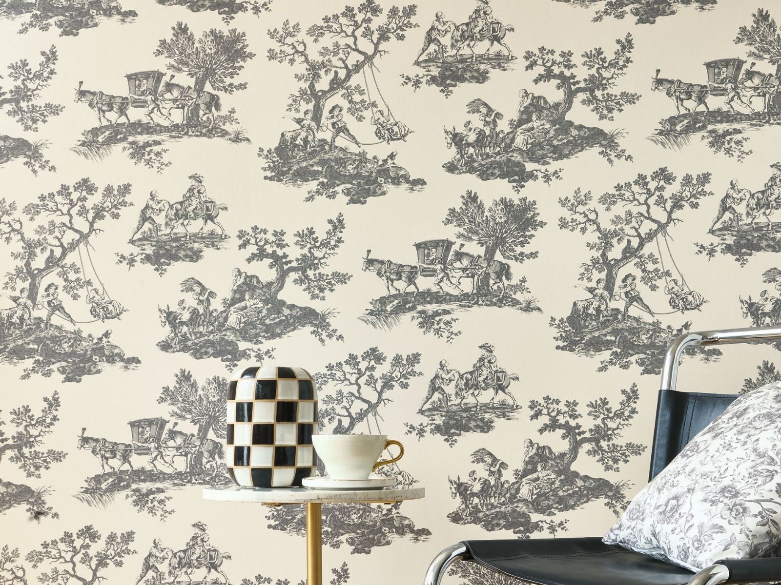 Laat je meevoeren in het ritme van het platteland met het behang Cadence uit de Les Belles Toiles De Jouy 2 collectie van Casadeco. Dit elegante vliesbehang toont levendige taferelen van schommelende figuren, galopperende paarden en oogstende boeren, geïnspireerd op historische Indiase dessins. De landelijke illustraties, rechtstreeks uit het Casadeco-archief, krijgen een moderne twist en brengen dynamiek en nostalgie samen op je muur.