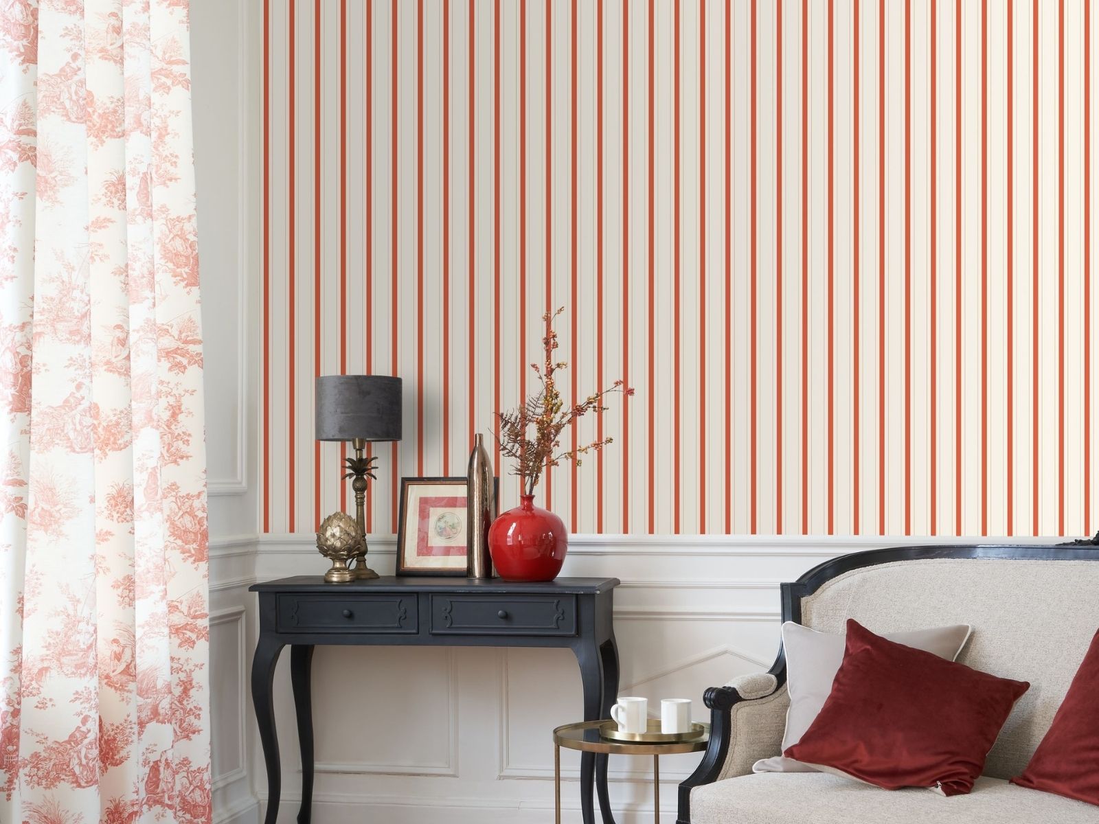 Breng rust en elegantie in je interieur met het Casadeco Les Belles Toiles De Jouy 2 Rayure behang. De zachte kleuren en het klassieke streeppatroon met één brede en twee fijne lijnen geven je wand een verfijnde uitstraling. Dit vliesbehang is speciaal ontworpen als stijlvolle aanvulling op de romantische dessins: Cadence Célestine van Casadeco.