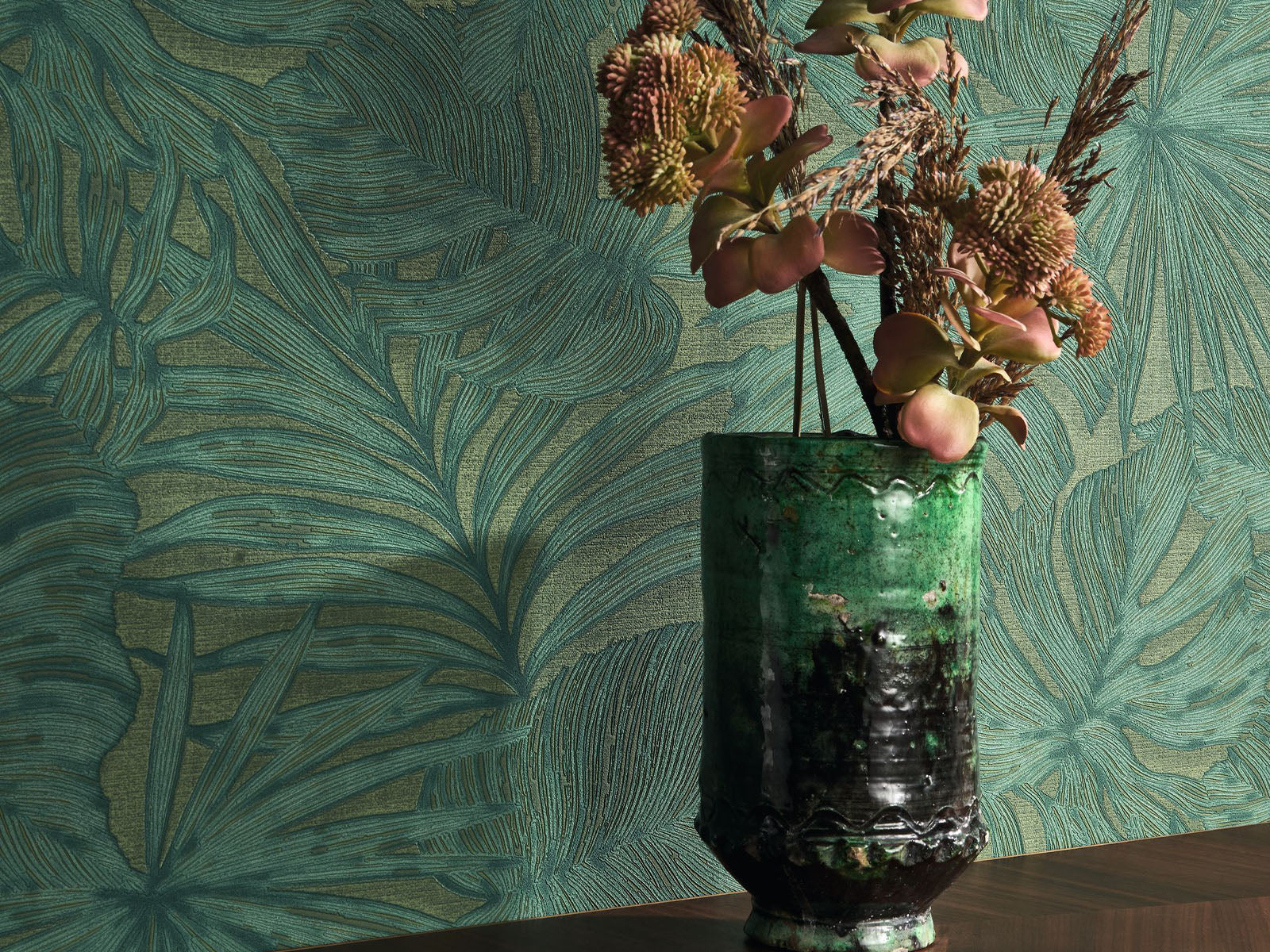 Voor wie houdt van tijdloze klasse is er het Casadeco Vegetals Granada behang. Het XL-patroon van een palmblad op een effen achtergrond creëert direct een krachtige uitstraling. Of je nu kiest voor zachte of diepe kleuren, dit botanische ontwerp vormt een stijlvol contrast dat perfect past in zowel moderne als klassieke interieurs.