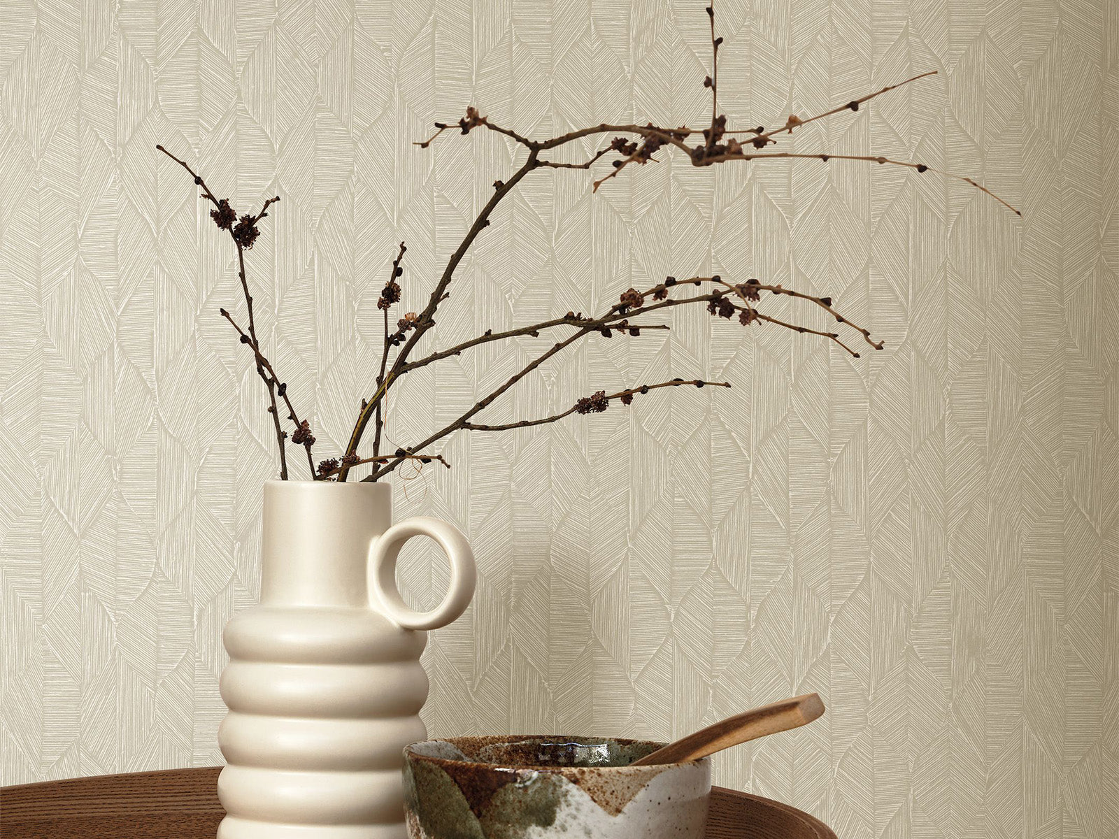 Op zoek naar subtiele verfijning? Het Casadeco Vegetals Tarrazu behang weeft een delicaat patroon van kleine bladeren van slechts 8 cm hoog. Het detail wordt pas zichtbaar van dichtbij, waardoor een verrassend trompe-l’oeil-effect ontstaat dat je muren op een subtiele manier tot leven brengt.