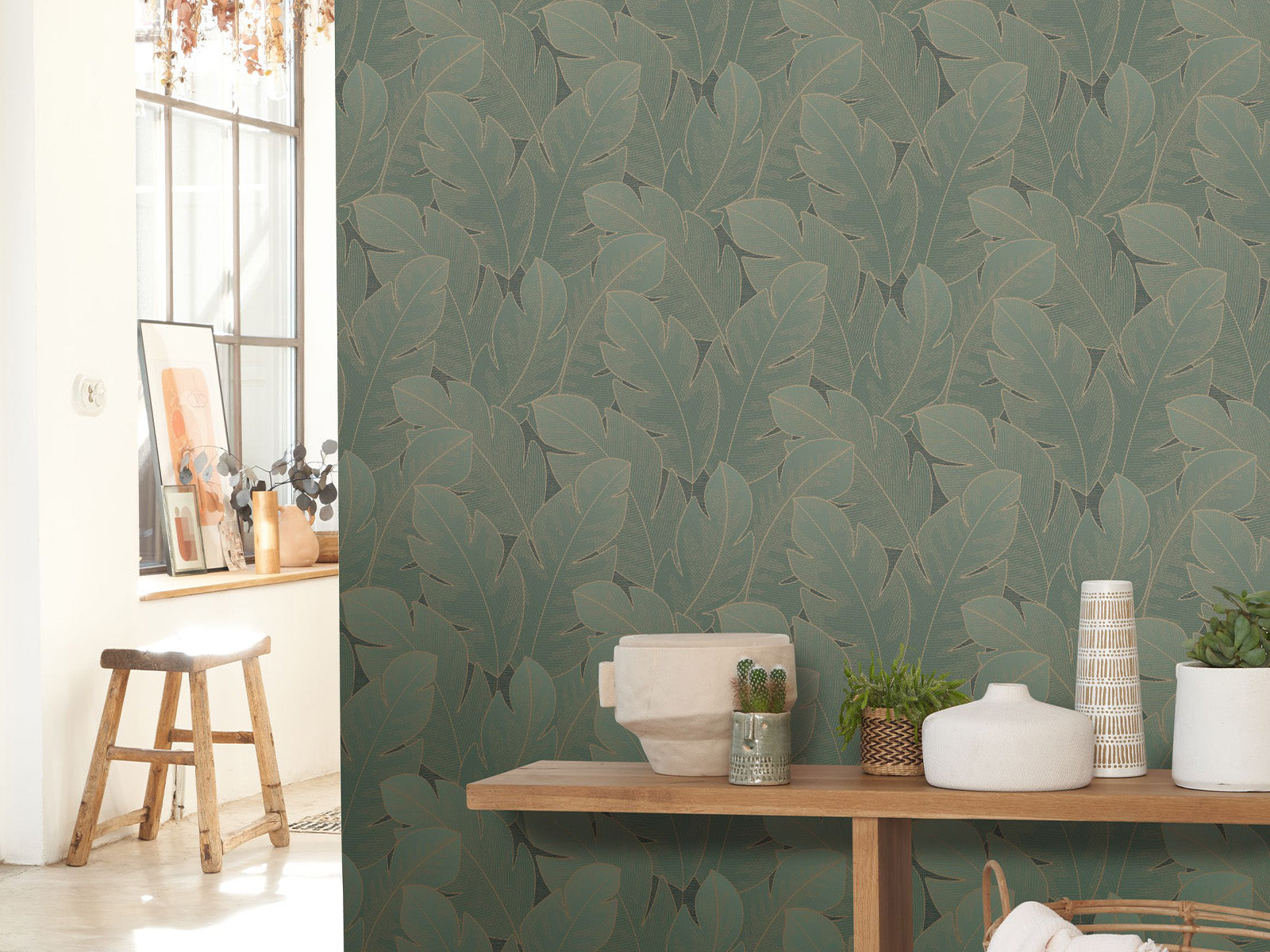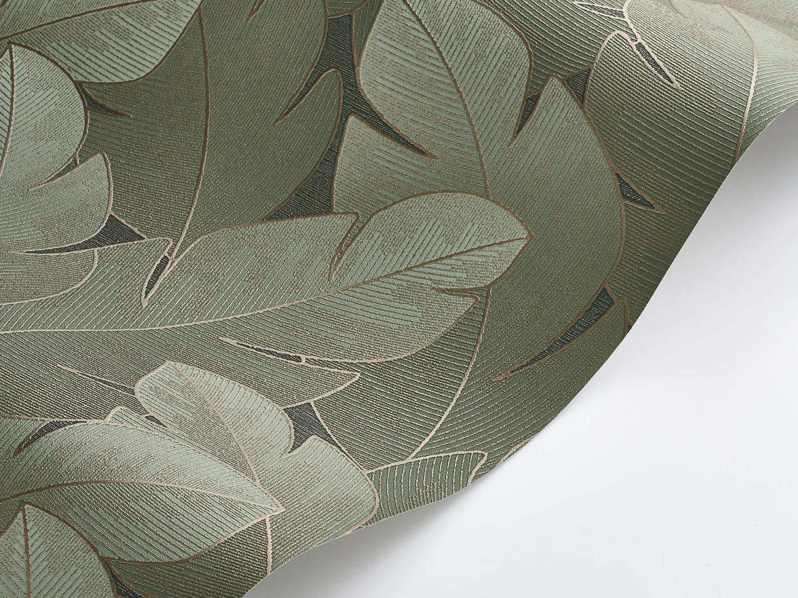 Het Casadeco Vegetals Yuto behang geeft je muur een elegante, bijna zwevende uitstraling. Grote bladeren met fijne randen en subtiele strepen dansen als lichte veren over het oppervlak. Afhankelijk van de kleur zie je een matte of glanzende gloed, waardoor het behang elke ruimte een levendig, verfijnd karakter geeft.
