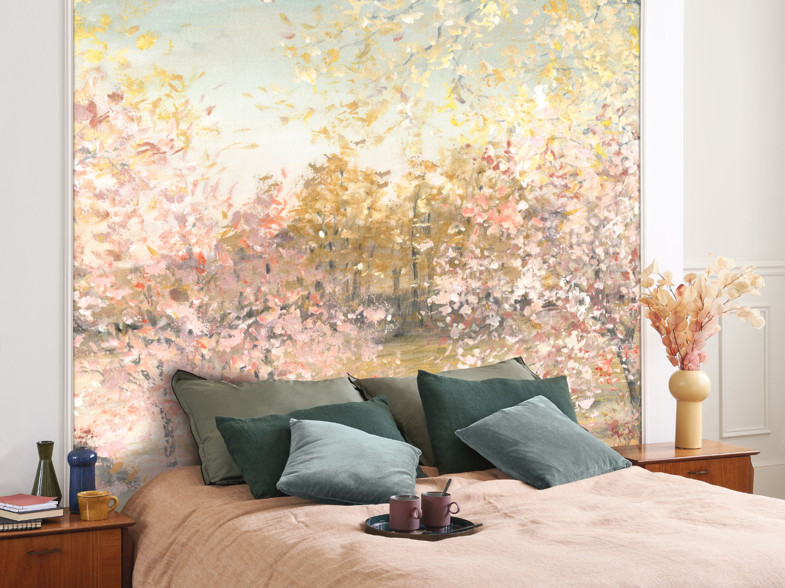 Droom weg tussen de bloesems van Casadeco WonderWalls Artistic Garden, een behang vol zachte pasteltinten en poëtische details. Geïnspireerd op het impressionisme brengt dit botanische ontwerp abrikozen-, appel- en amandelbloesems samen in een kleurrijk tafereel. Een ode aan de lente die je interieur een romantische, natuurlijke sfeer geeft.