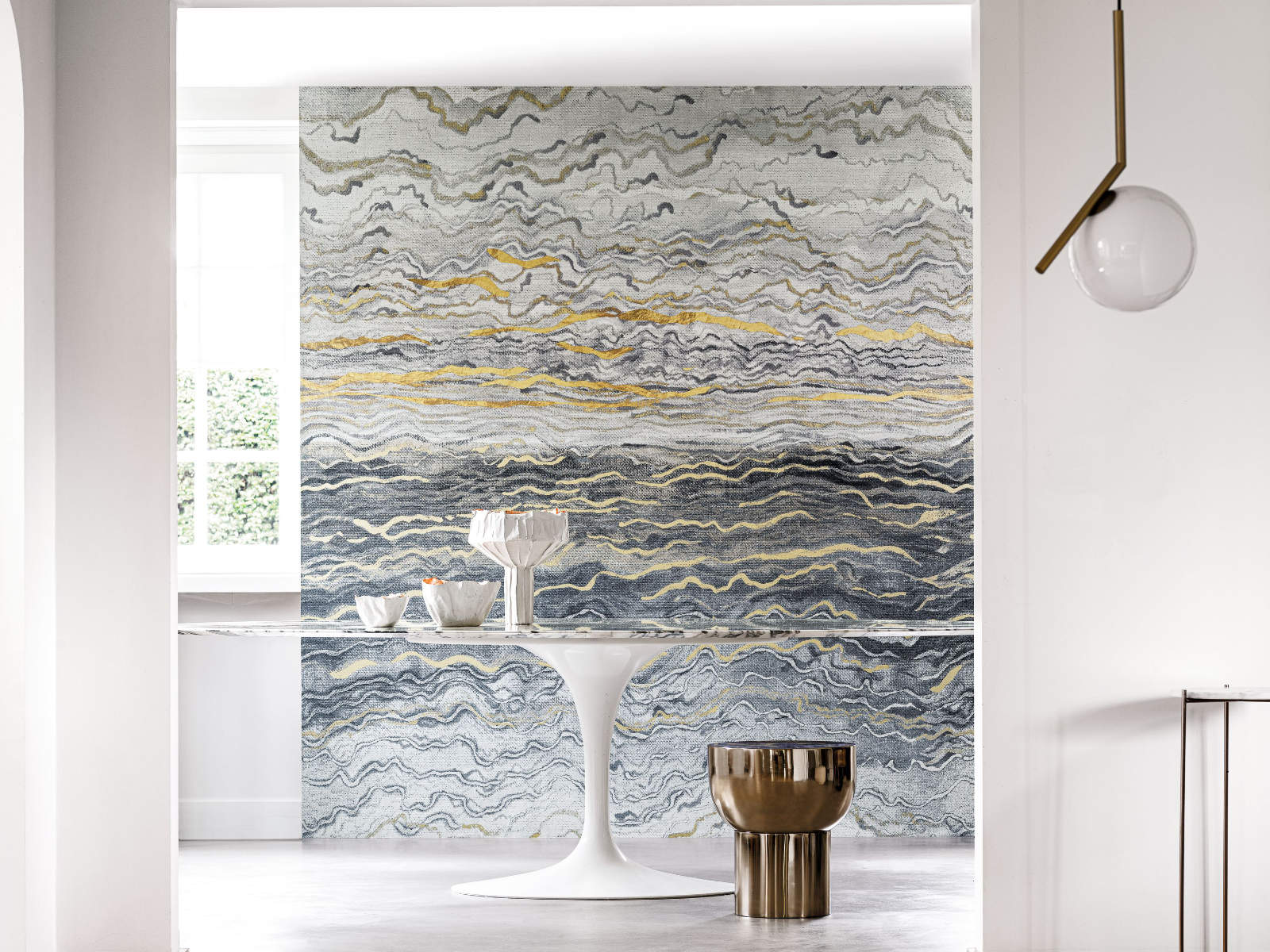 De Alliages Azurite - 75064192 van Casamance behang is een immensiteit van de hemel die is afgedrukt op een textuur van metallic basis. De digitale print vangt de verschillende tinten blauw en de geoxideerde kleuren van azuriet. Dit panoramische wandpaneel voegt diepte en intensiteit toe aan elk interieur.