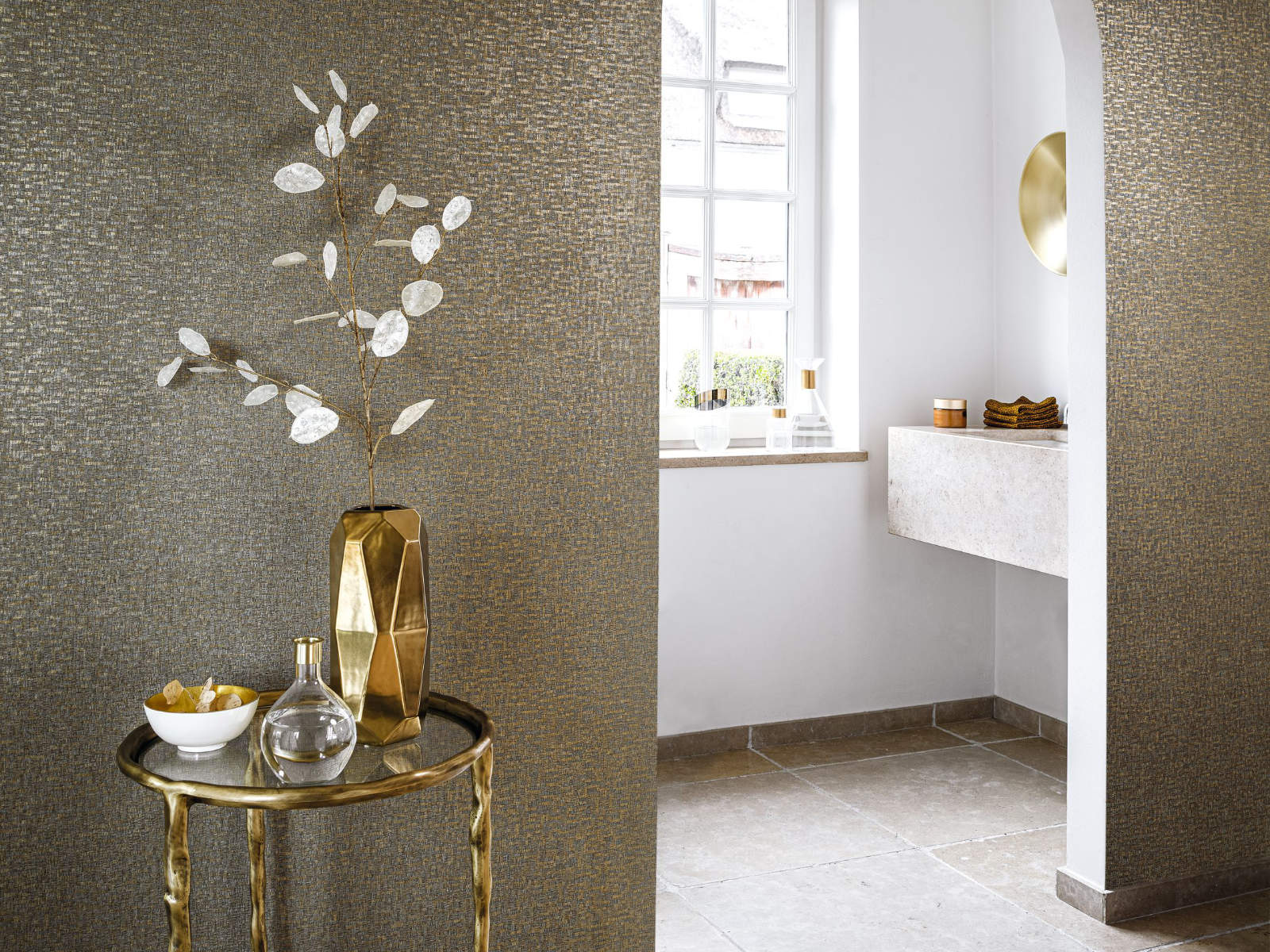 De Alliages Tessela - 75042864 van Casamance behang is een prachtig dessin dat een mozaïek van kleine stukjes marmer of steen op papier reproduceert. De gebruikte techniek van drie lagen benadrukt de contouren en reliëf. Tussen glans en mat, met schitterend goud en zilver, speelt Tessela met de interactie van schaduw en licht. Sommige kleuren worden versterkt door metallic inkten met parelmoer accenten.