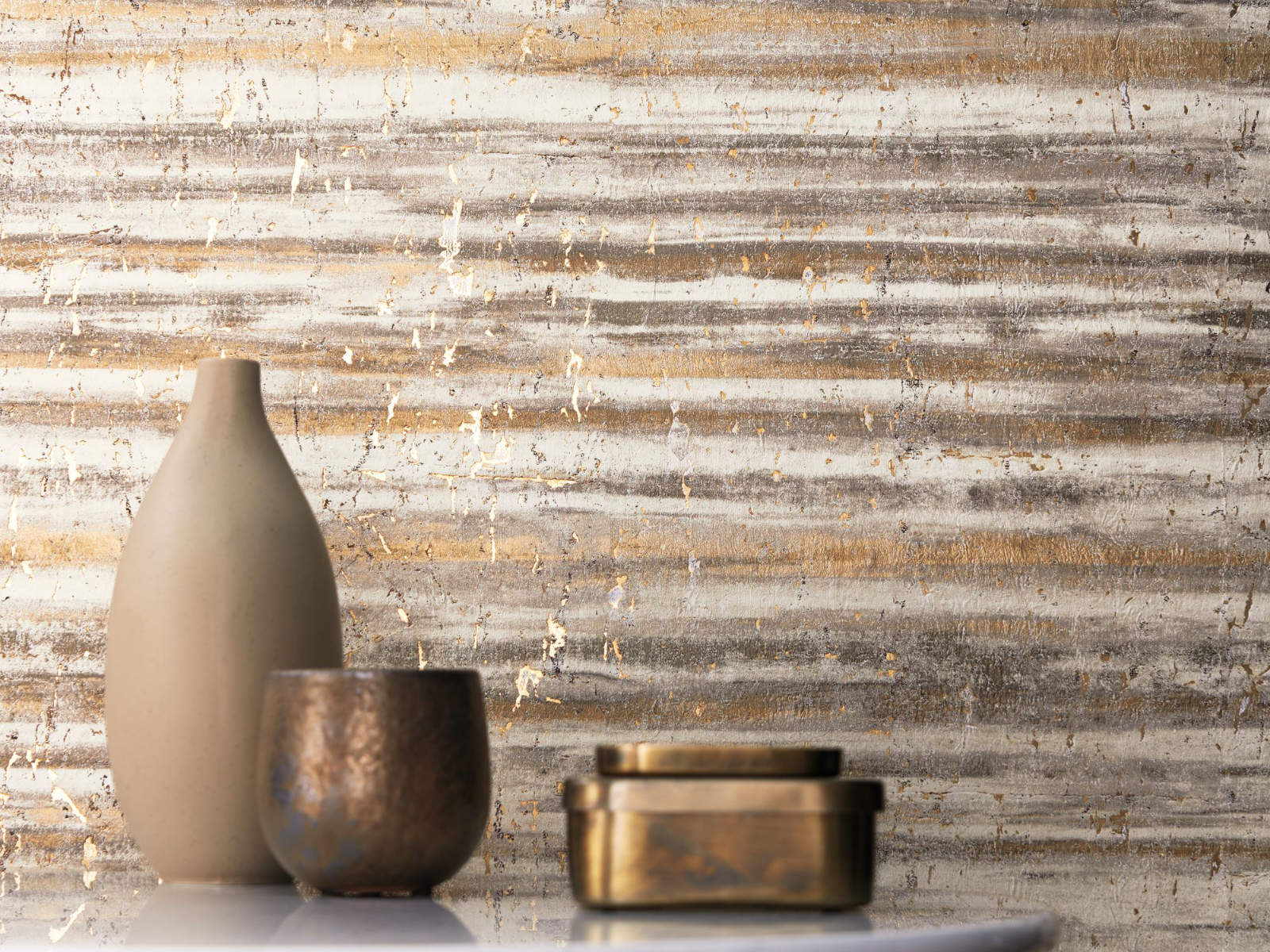 De Alternative Liège - 70791024 van Casamance behang is geïnspireerd door de natuurlijke schoonheid van kurk. Dit ecologische materiaal is natuurlijk, hernieuwbaar en recyclebaar. Het kurkbehang ondergaat verschillende behandelingen, waarbij een gouden folie tevoorschijn komt door de onregelmatige uitsparingen van de kurk, wat zorgt voor een metallic glans. Vervolgens wordt het gekleurd in een mix van matte en metallic tinten, zoals goud, zilver of brons, waardoor de onregelmatige textuur van de schors nog meer wordt benadrukt. Het resultaat is een uniek behang met een organisch dessin dat een luxe uitstraling geeft aan elke ruimte.