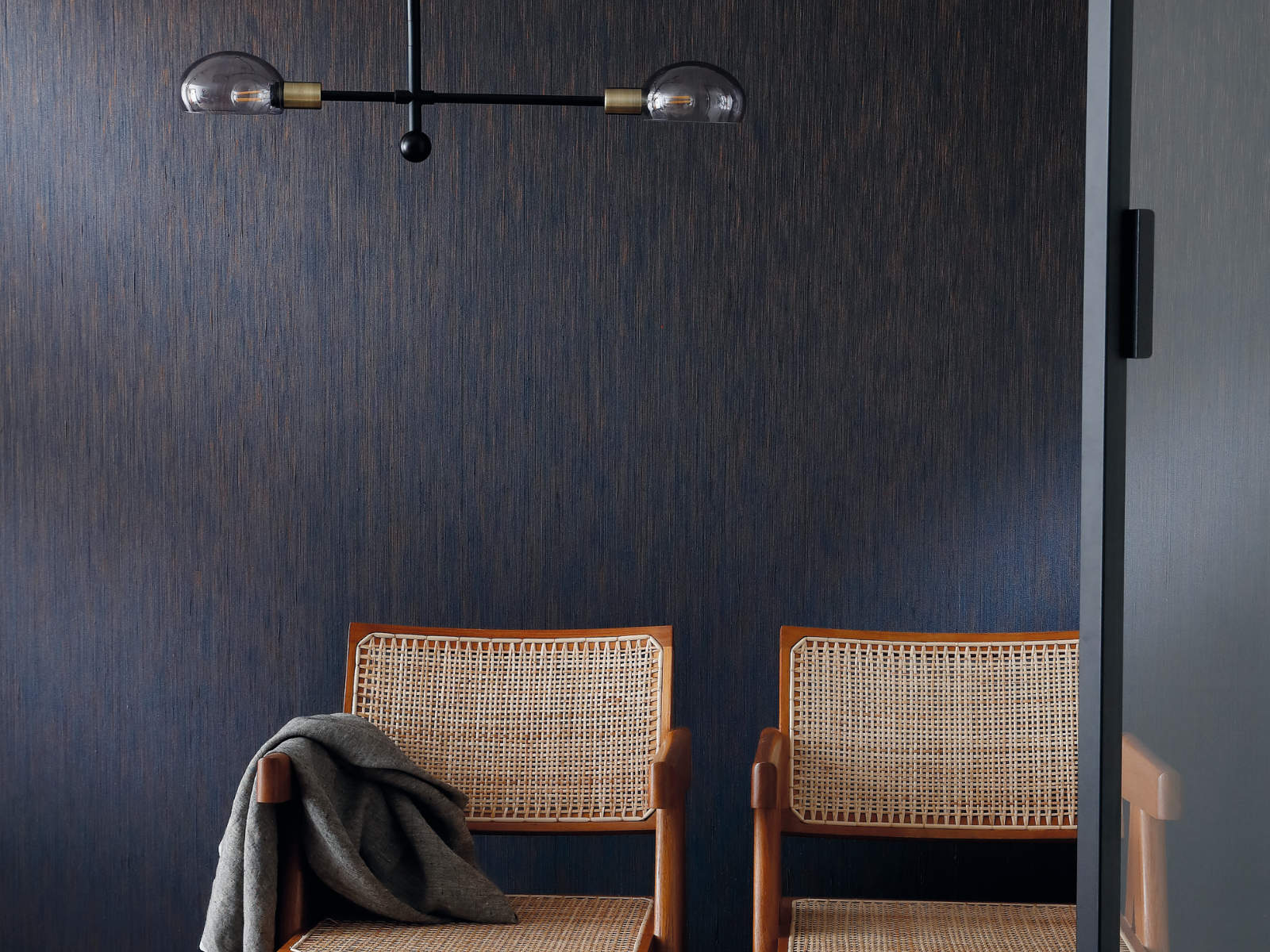 De Bagatelle Jussieu - 70640918 van Casamance behang is een oneindig rijk krijtstreep dessin. Door de combinatie van linnen en viscose krijgt het matte garen een willekeurige glans. Met variaties tussen glans en mat, mengen de diepe kleuren zich met een zeldzame elegantie.