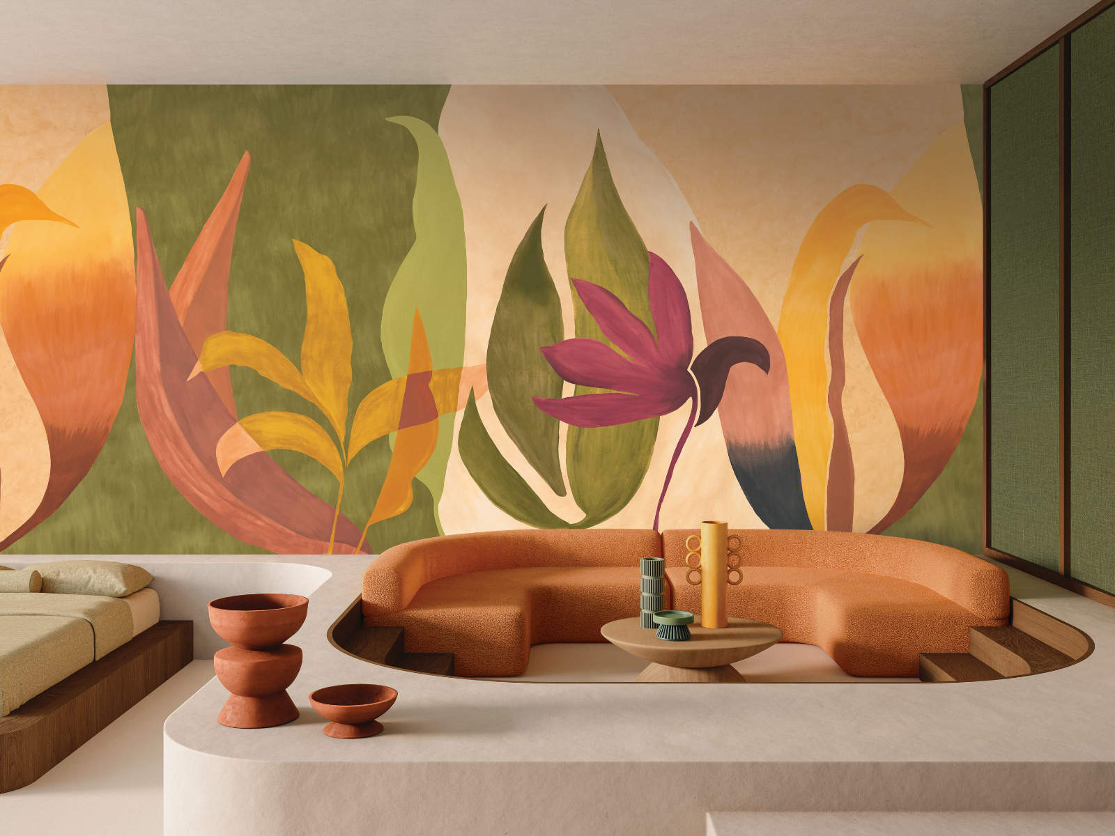 De Casa Azul Nahua - 76343772 van Casamance is geïnspireerd door de rijke tradities van de Nahua en andere inheemse culturen. Dit behang brengt de magie van handgeschilderde botanische patronen rechtstreeks naar je muur. Met een textuur die elk detail tot leven wekt, intense kleurschakeringen en vormen die de grootte van het leven zelf benaderen, belooft Nahua een ongeëvenaarde schoonheid in elke ruimte.