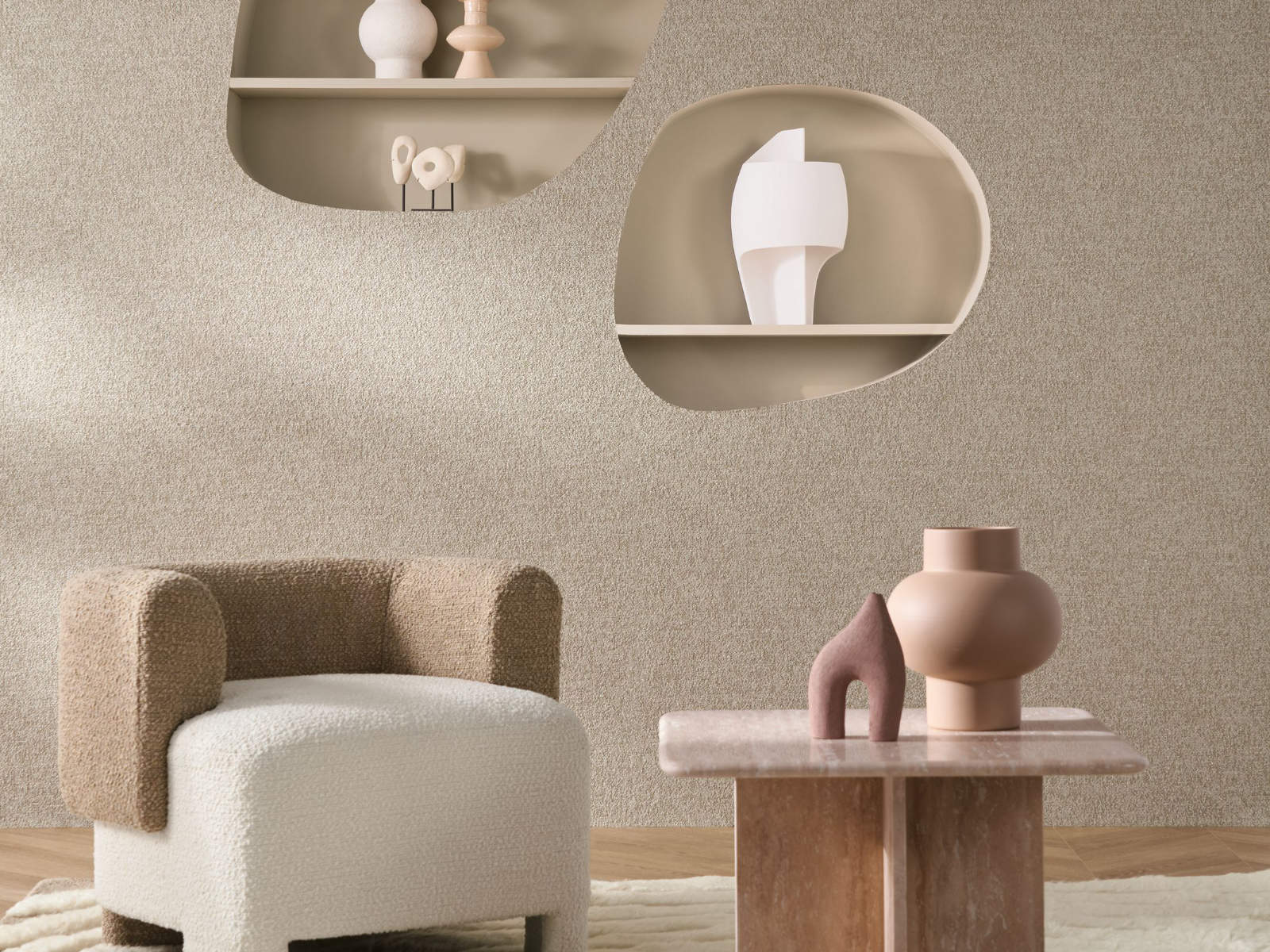 De Etreinte collectie van Casamance is een collectie die je omarmt met een buitengewone zachtheid. Dit behang brengt met zijn hedendaagse tinten en de rust die de textuur uitstraalt, een oase van kalmte in je leefruimte.