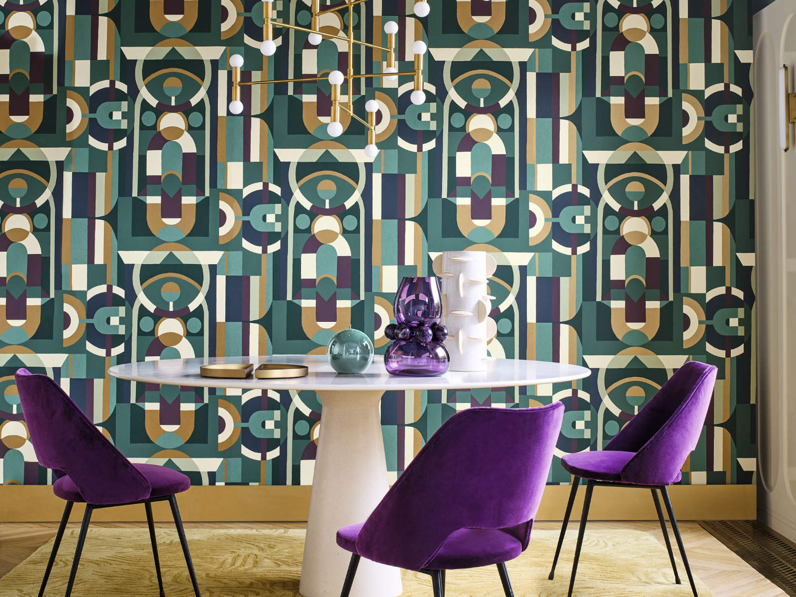 De Faubourg Des Lumières collectie van Casamance is een eerbetoon aan de baanbrekende principes van de Modernistische Architectuur. Deze sprankelende collectie schittert door een overvloed aan texturen en de metaalachtige glans van zijn inkten. De diepe tonen en elegante geometrische composities, geïnspireerd door de architectuur en glas-in-loodramen van de jaren dertig, vormen samen een meesterwerk dat de essentie van modernisme en elegantie uitstraalt.