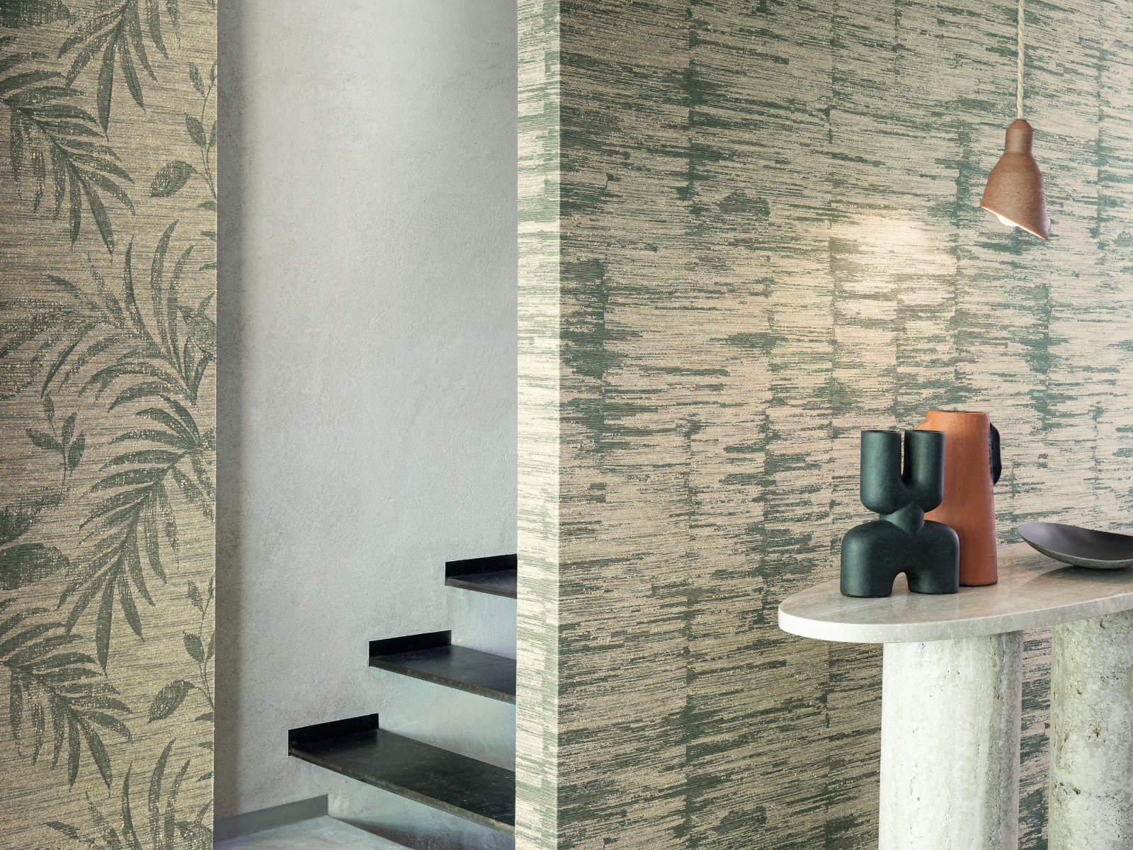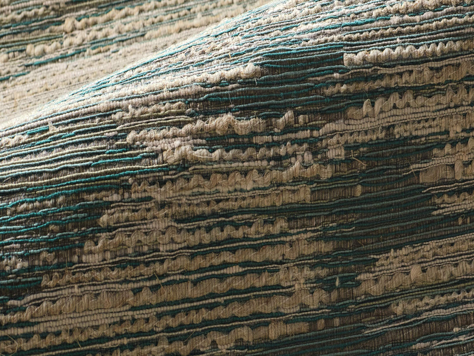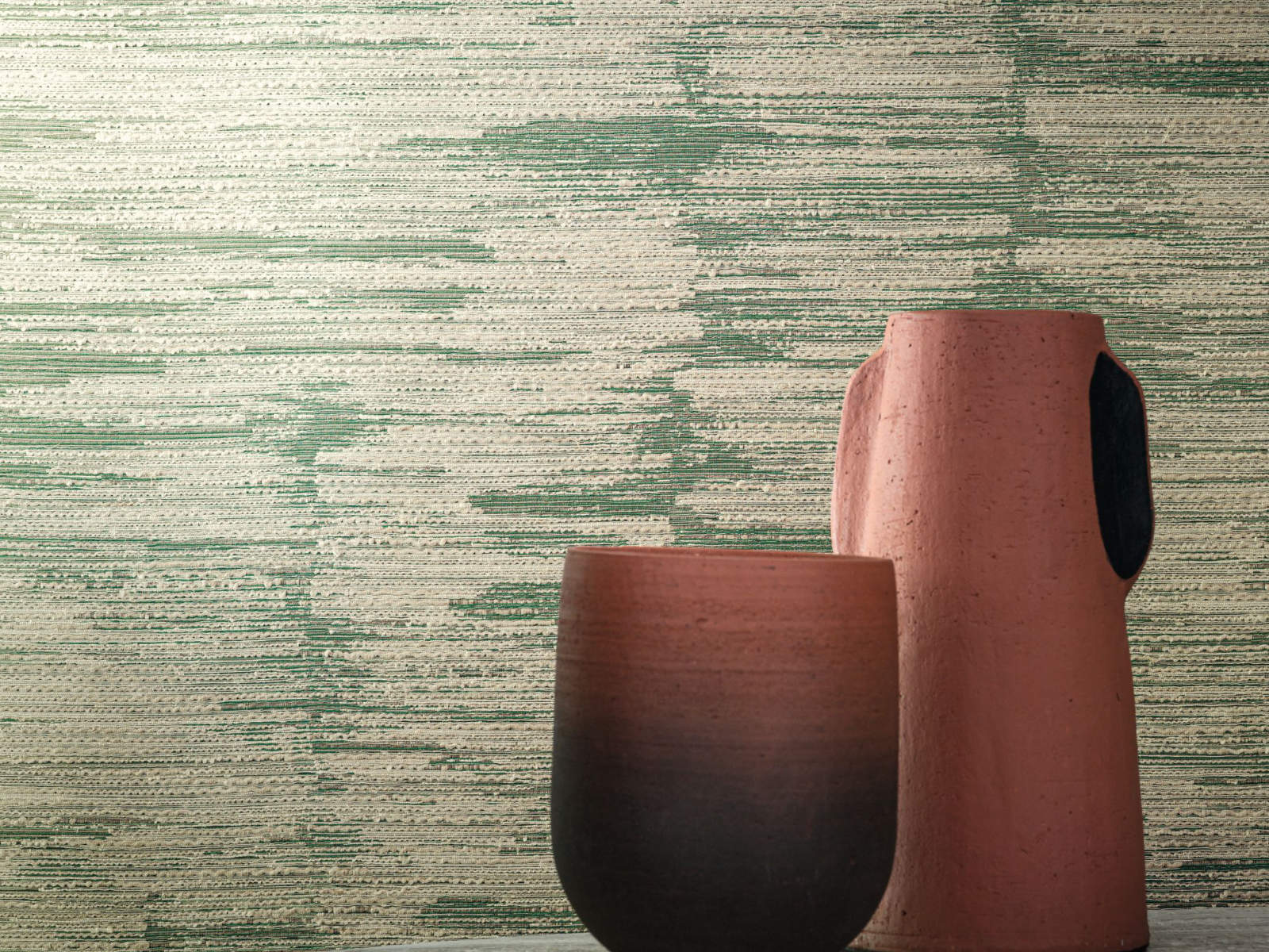 De Feroé Alchemilla - 70960660 van Casamance behang is geïnspireerd op een inheemse plant van de Faroe Eilanden en draagt de poëtische naam "mantel van Notre-Dame" vanwege zijn vermogen om regendruppels te behouden. Deze zachte en mooie plant heeft de semi structuur van het behang geïnspireerd. In de inslag garen wordt een mengeling van wol en linnen gebruikt, dat willekeurig in diktes golft en de bescherming van een plantendak oproept. Net zoals de plant zich verweeft met de grond, verspreidt Alchemilla zich in de muren en geeft het een gevoel van zachtheid dat doorloopt in de verschillende tinten van het behang.
