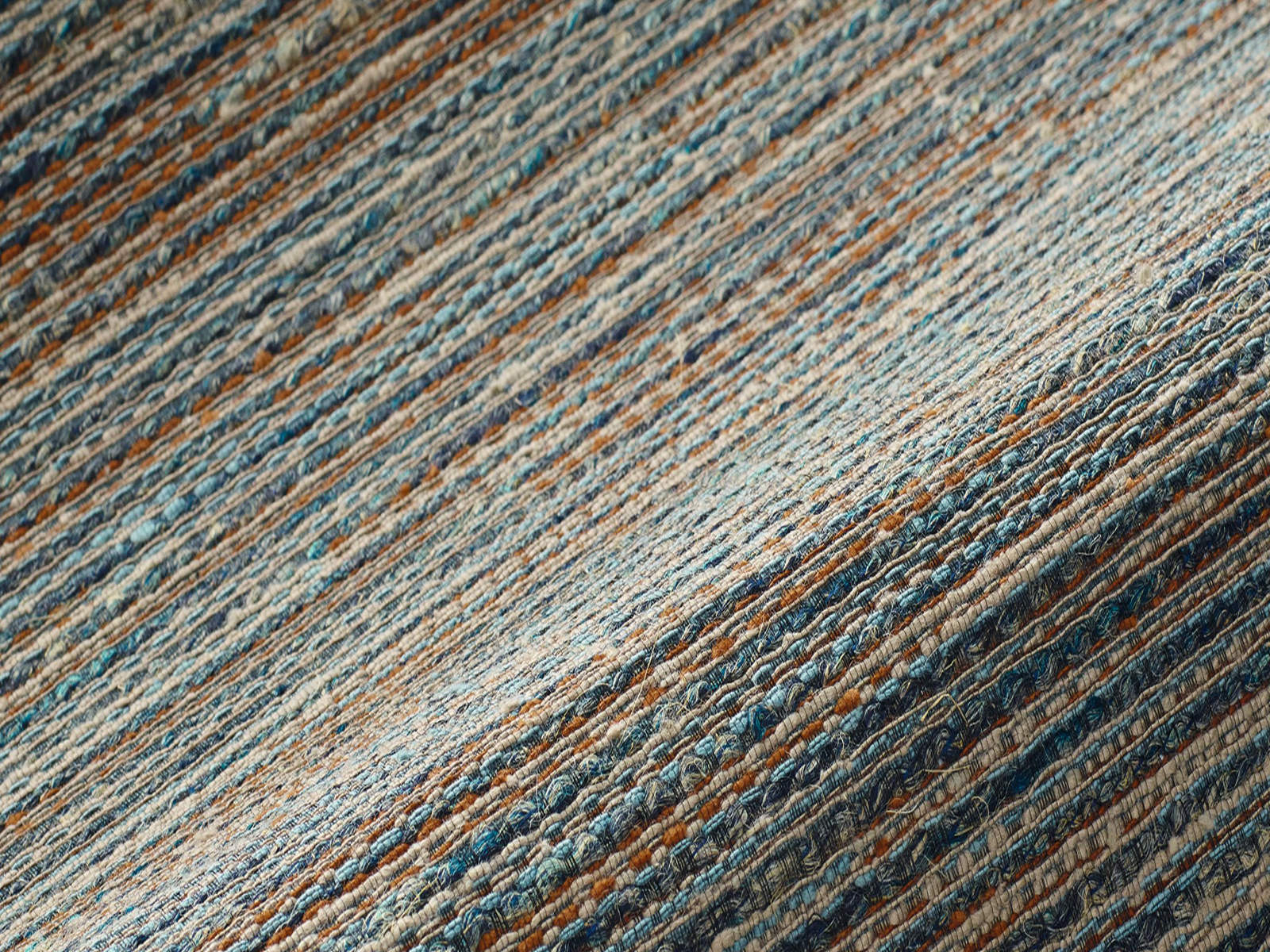 De Feroé Vagar - 70970515 van Casamance behang is geïnspireerd op het gelijknamige eiland, Vagar, één van de achttien Faroe eilanden. De oneindige kleurenpaletten en unieke lichtval van het eiland zijn perfect vertaald in deze wandbekleding, die naadloos aansluit en een gevoel van ruimte en vrijheid geeft. Verschillende tinten blauw worden gecombineerd met diepe aardekleuren en zijn verweven in een onregelmatig weefpatroon van voornamelijk wol en linnen. Een canvas met kalmerende horizontale lijnen, dat de prachtige landschappen van de Faroe Islands weerspiegelt tot zover het oog reikt.