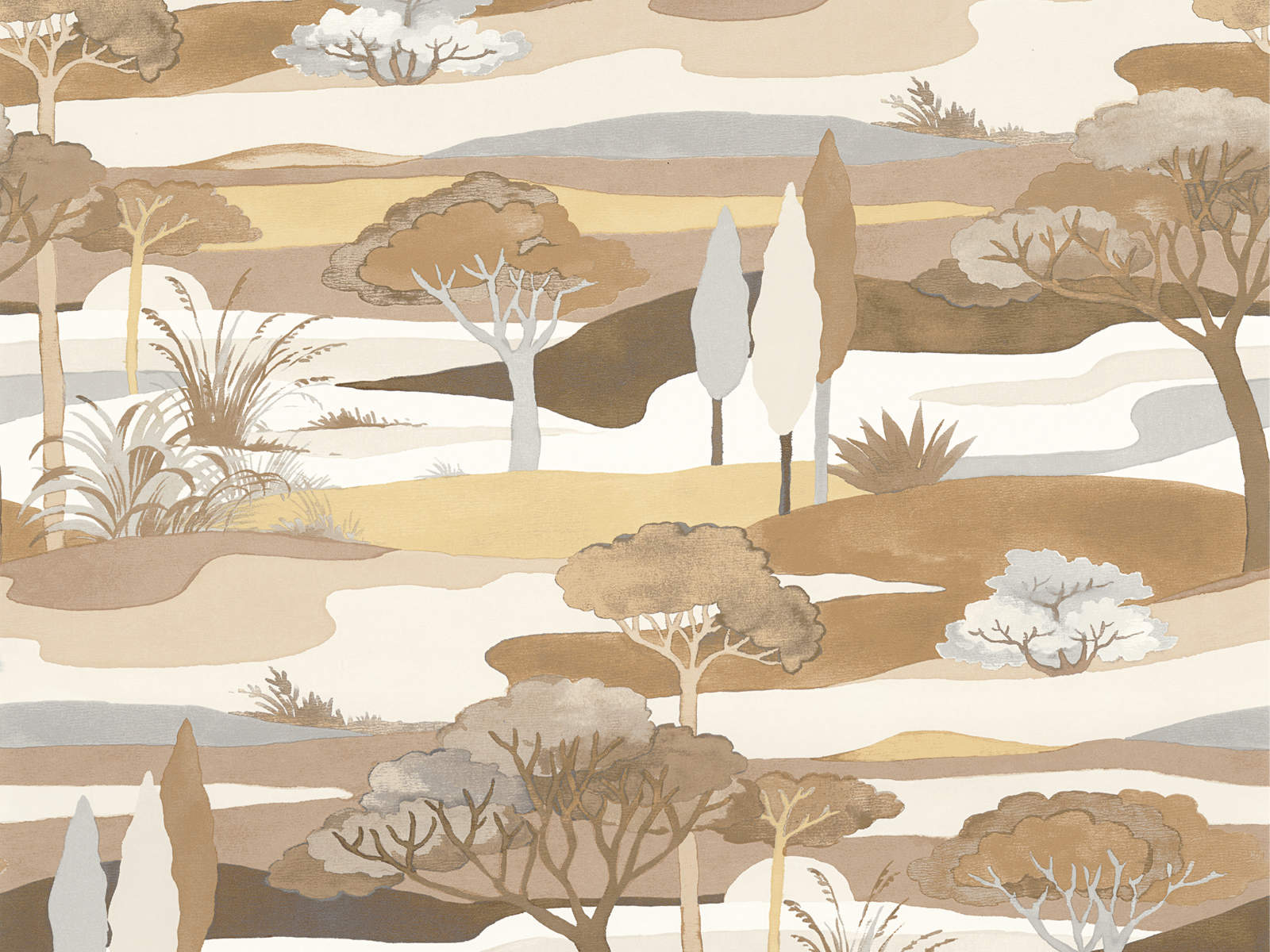 De L'Île Aux Oiseaux Cap Ferret - 75870100 van Casamance behang is een prachtige dessin op een glad vlies waarop de penseelstreken de oceaankusten en duinbossen creëren, zo ver het oog kan zien. In zachte waterverf komt het iconische landschap van Cap Ferret tot leven. Parasol pijnbomen, marram en tamarisken bedekken de kenmerkende zandhellingen van de Landes regio. De zachte regen creëert een oneindig aantal zachte en heldere tinten, gebogen in groen, roest of een verrassende palet van beige tinten. Casamance heeft de rotogravure techniek gebruikt om de vlakken van matte tinten te creëren die de kleuren van Cap Ferret hun finesse geven.