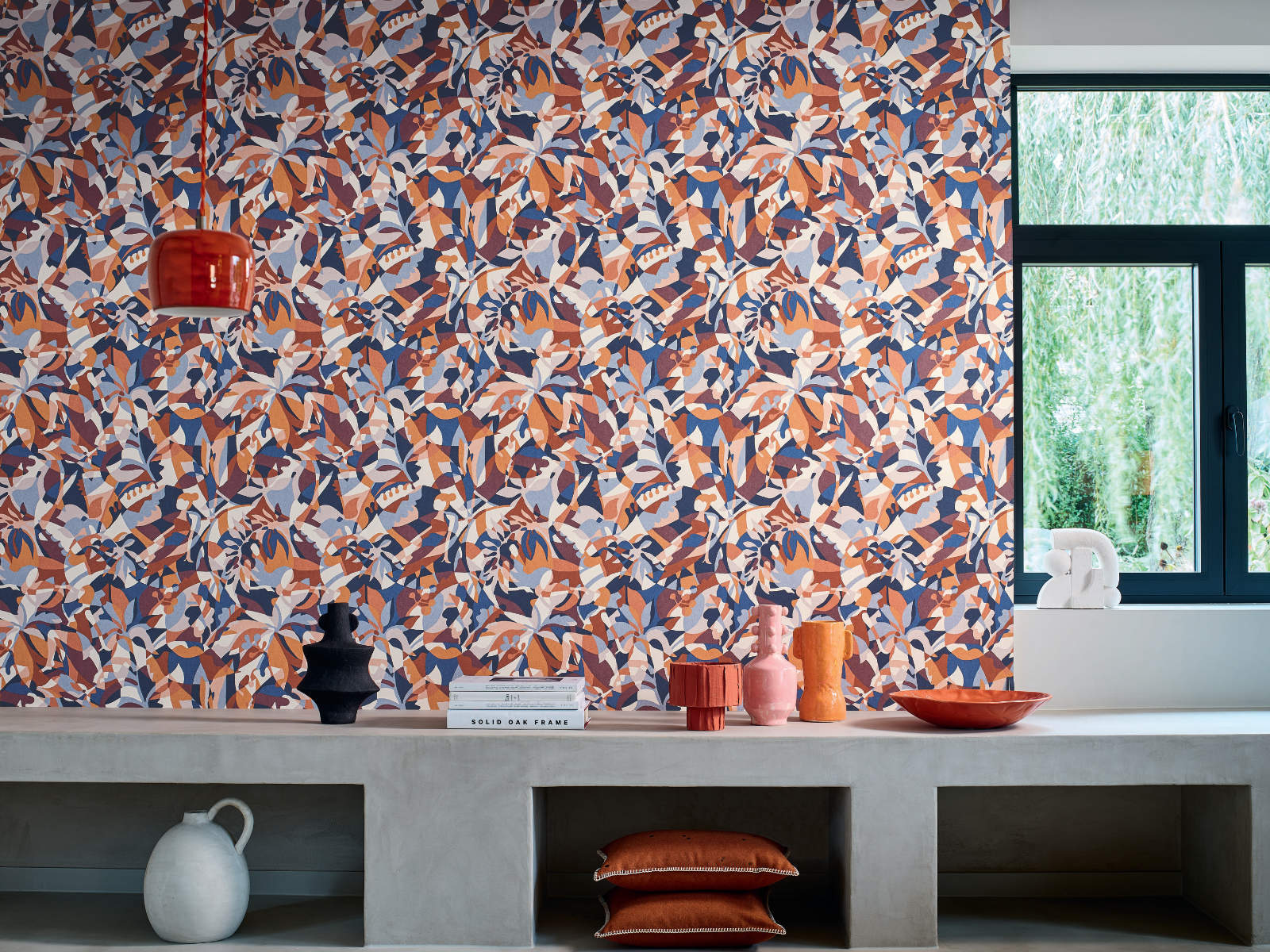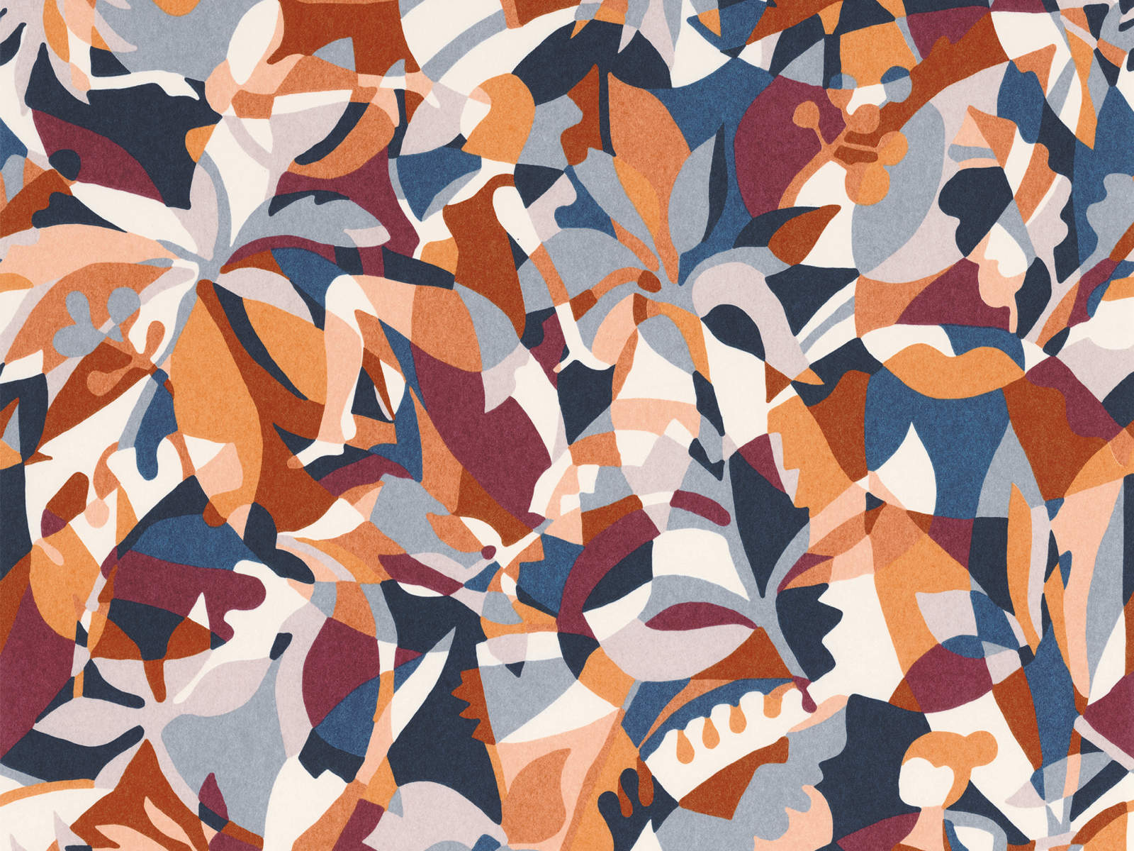 De L'Île Aux Oiseaux Plongeon - 75881018 van Casamance behang is een prachtige verfrissende uitstraling in je interieur. In tegenstelling tot traditionele productietechnieken, is Plongeon gemaakt met behulp van een oude textiel drukmachine, met behulp van 10 films om een onaangepaste hoeveelheid kleur te verkrijgen. Silhouetten van zwemmers, gestileerde planten en abstracte vormen overlappen elkaar in een aquatische samensmelting.