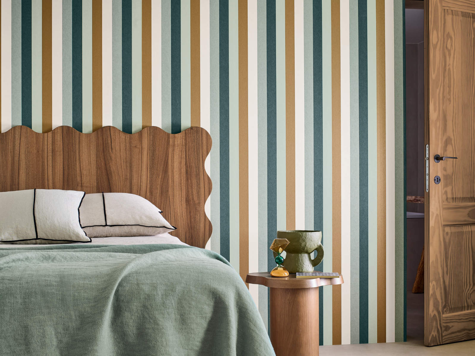 De L'Île Aux Oiseaux Transat - 75923364 van Casamance behang is een op papiervezel geïnspireerde textuur op een vlies ondergrond, met verticale strepen. De kleuren vormen samen een harmonieus geheel. Sommige elementen zijn helemaal mat en andere hebben een bronskleur dankzij de metallic inkt. Deze durf en onconventionele kleurencombinaties van dit behang zijn geïnspireerd op het Cap Ferret kleurenpalet.
