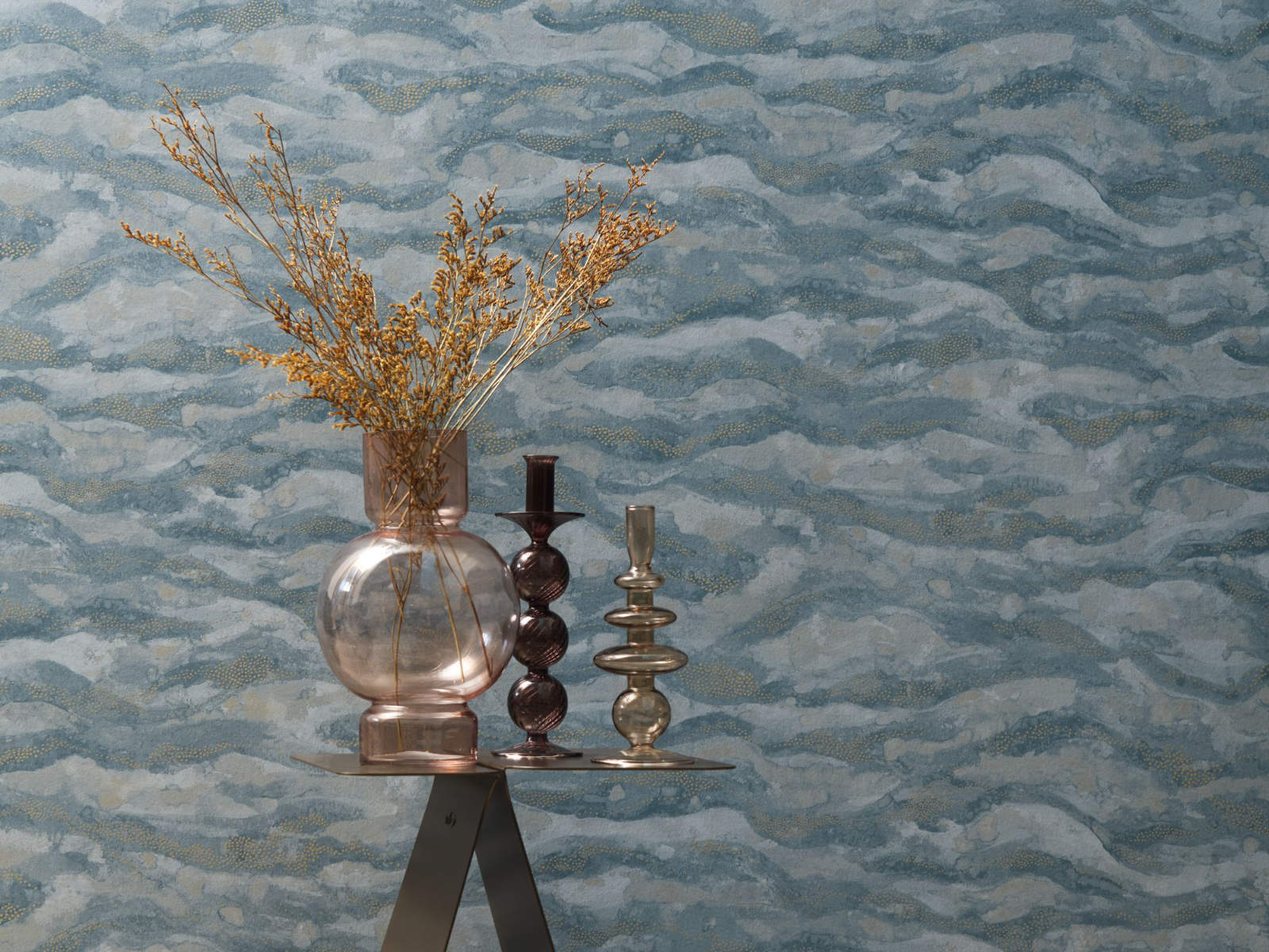 De Nuit D'Orient Sohar - 75401732 van Casamance behang roept de emotie van de zee of de lucht op, afhankelijk van de stemming en de gekozen kleur. Het idee van het oneindige en een nobel karakter. De door Casamance gebruikte techniek is vernieuwend. De drukcilinders produceren een nauwkeurig ontwerp. Het papier is glad en zacht, waardoor de kleinste details van het watergekleurde landschap goed tot hun recht komen. Een metallic korrelfilm tilt de details op met verfijnde en delicate gouden stippen.