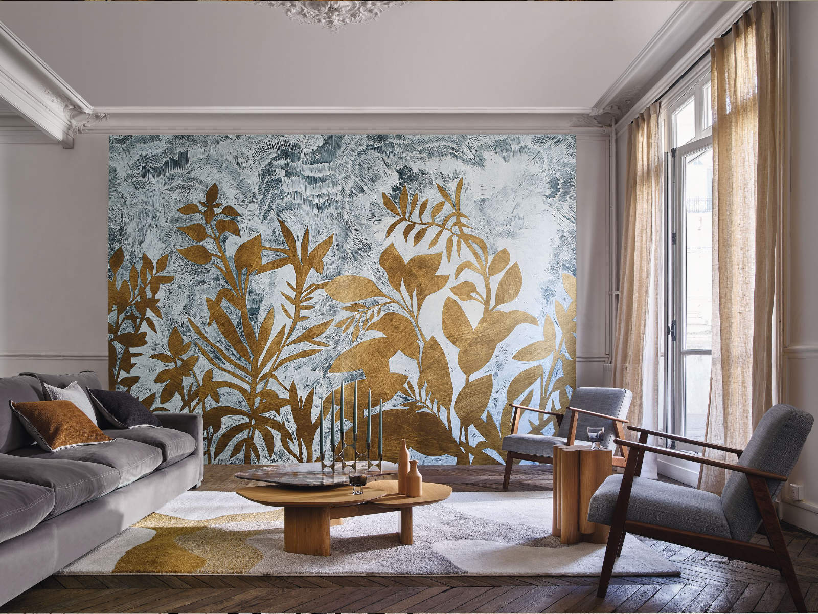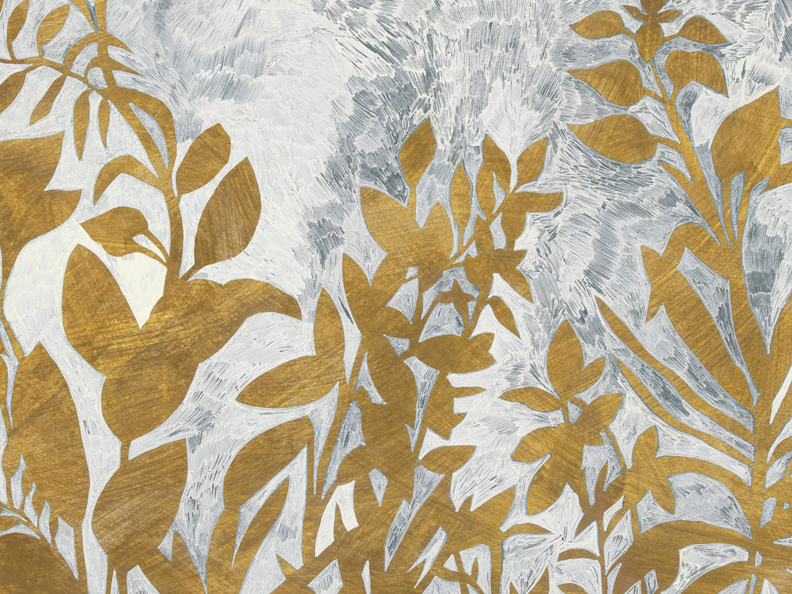 De Panoramas 2 Fleur de Lune - 75651832 van Casamance behang is bloeit alleen bij het vallen van de avond en verspreidt zijn delicate geur in de lucht. De kleur van de bloembladen wordt dan helder, versterkt door het maanlicht. Op een gouden basis schetst een digitale print het dramatische gebladerte. Het elegante silhouet verspreidt zich over het wandpaneel, de schaal bedekt de muren met een nauwkeurige en verfijnde weergave.