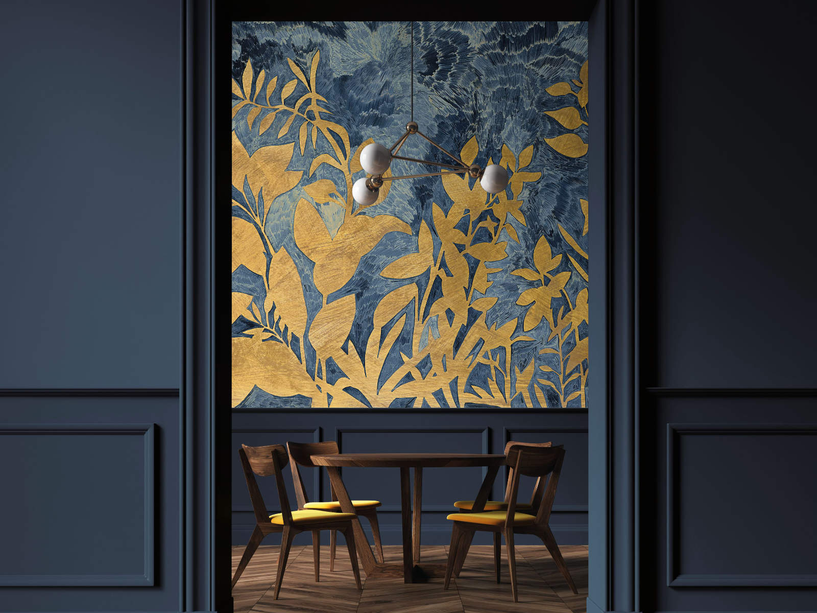 De Panoramas 2 Fleur de Lune - 75651934 van Casamance behang is bloeit alleen bij het vallen van de avond en verspreidt zijn delicate geur in de lucht. De kleur van de bloembladen wordt dan helder, versterkt door het maanlicht. Op een gouden basis schetst een digitale print het dramatische gebladerte. Het elegante silhouet verspreidt zich over het wandpaneel, de schaal bedekt de muren met een nauwkeurige en verfijnde weergave.