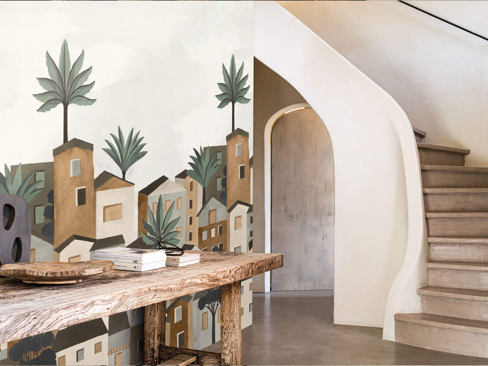 De Panoramas 2 Vila Viela Int - 75861528 van Casamance behang is een prachtig panorama die het interieur en levenstijl uitdrukt waarin de tijd nemen een deugd is. Vila Viela betekent Oude Stad in het dialect van Nice. Terwijl we door de zonovergoten, geplaveide straatjes dwalen, zien we het bruisende marktplein al van verre en worden we gegrepen door de geur van de kruiden en nog meer door de kleuren van de oude stad.