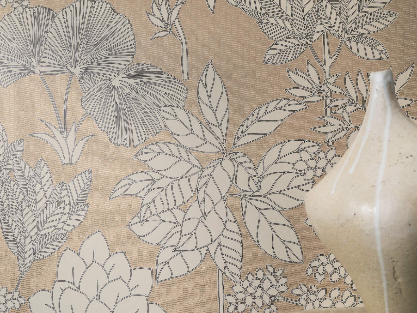 Breng een vleugje natuurlijke elegantie in je interieur met Casamance Tressora Inara – een botanisch vliesbehang dat luxe en rust prachtig combineert. Het bladmotief heeft in de meeste van de acht kleurvarianten een subtiele ton-sur-ton uitstraling, terwijl enkele kleuren zijn verfraaid met een chique metallic lijn die het ontwerp extra diepte en verfijning geeft. Dankzij de druktechniek is de textuur licht voelbaar, waardoor je muur een rijke, tactiele beleving krijgt.