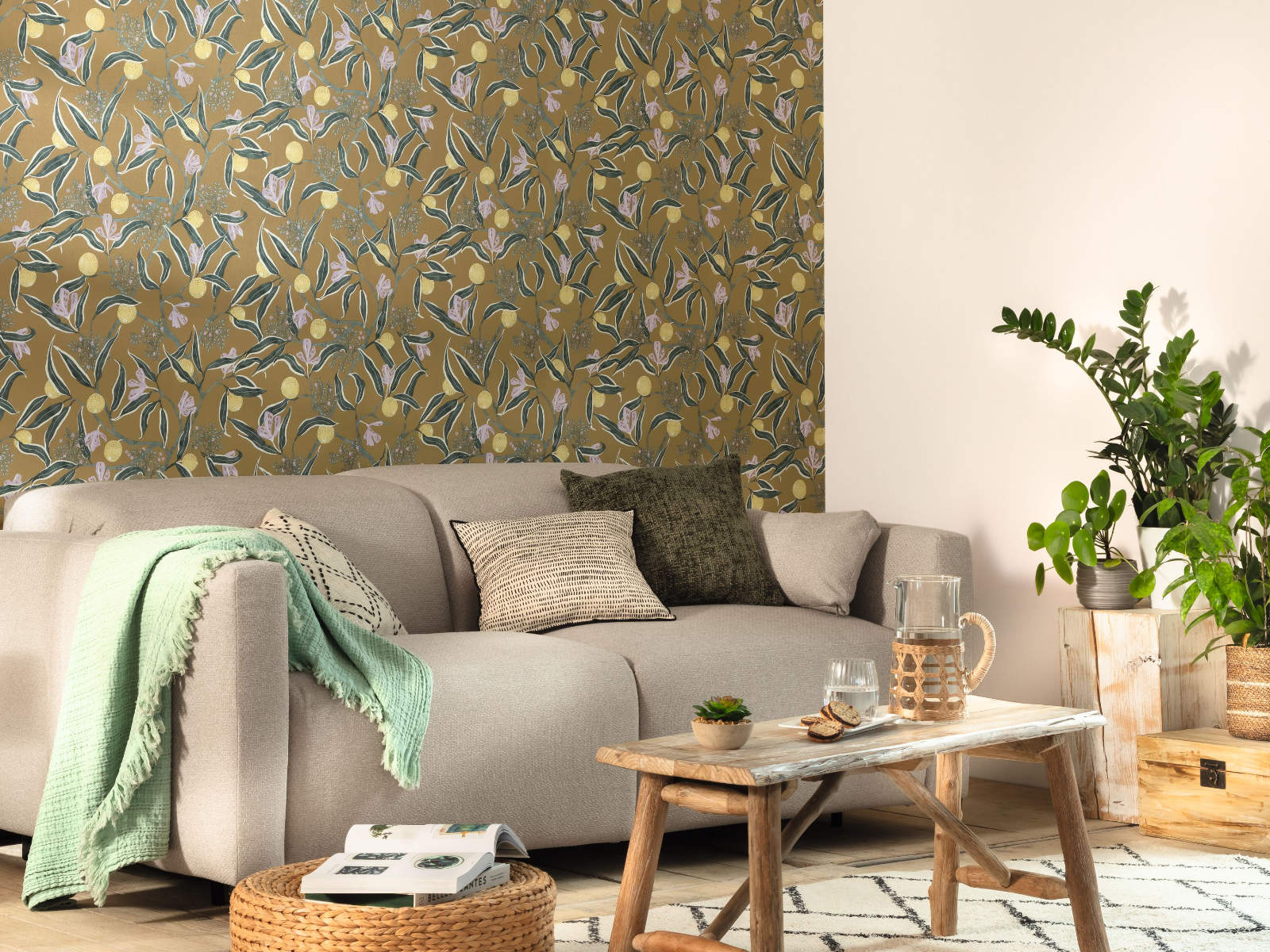 Laat je verleiden door de levendige charme van het behang uit de Caselio Kitchen Box Eurydice collectie. Geïnspireerd op fruitbomen en de natuurlijke overvloed uit mythologische tuinen, brengt dit botanische ontwerp een speelse, frisse energie in je keuken. Het patroon barst van het leven en roept de sfeer op van zomerse dagen vol rijp fruit en groen om je heen.