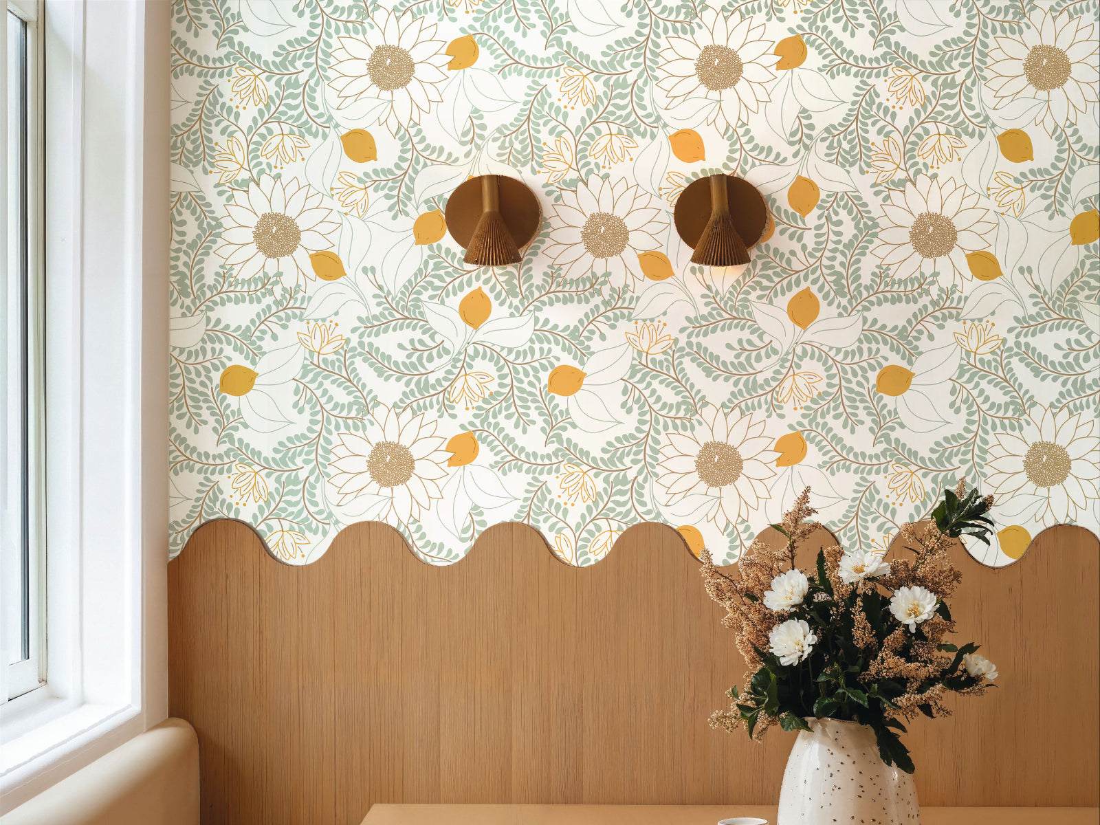 Dit sterke vinylbehang op vlies is ideaal voor dagelijks gebruik en eenvoudig aan te brengen. Dankzij de verspringende aanzet en een patroonhoogte van 64 cm ontstaat er een vloeiend, dynamisch geheel dat je keuken laat stralen van frisheid en karakter.